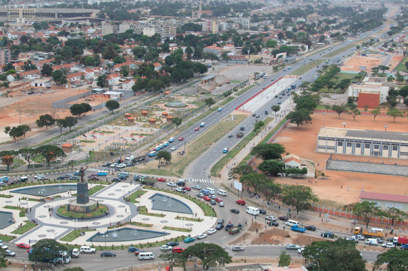 Centrum hlavného mesta Luanda, križovatka niekoľkých viacpruhových ciest diaľničného typu.
