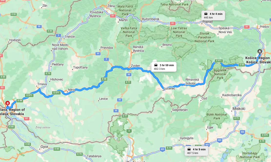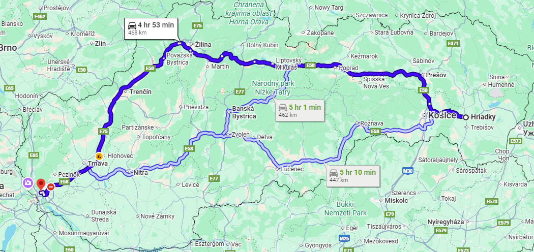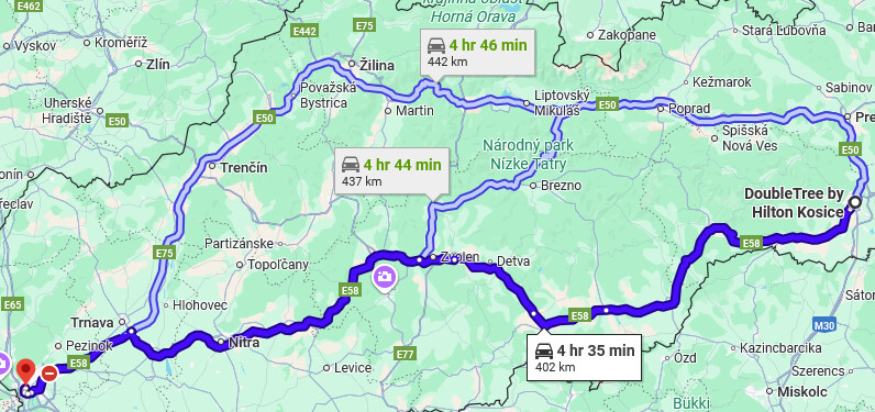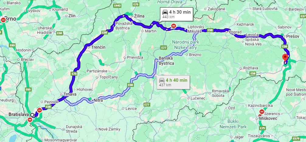 Podla Waze je aktualne KE→BA rychlejsie juhom.