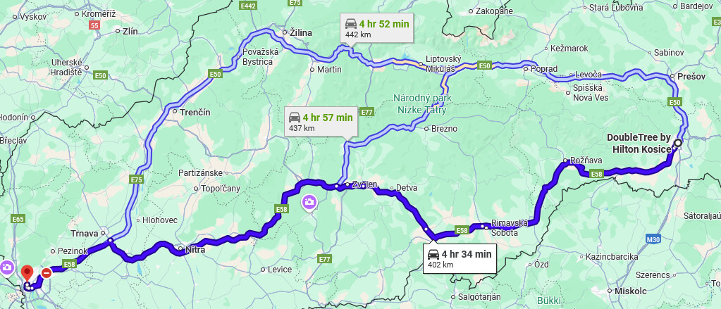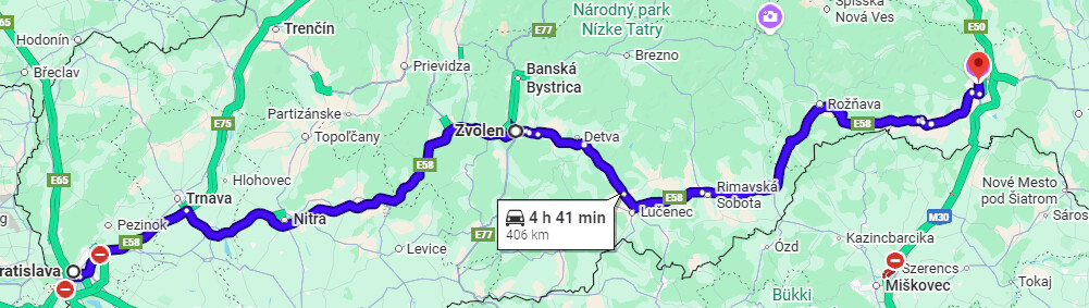 Dnes 8:30 ráno podľa googlu, trasa k rodičom. Primárne idem Čertovicu ak nie je sneh. Brutálny rozdiel v časoch.