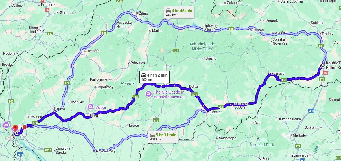 stači zmeniť ciel “by hilton,…”, a dať tam pre “objektívnosť” napr križovatku Hrašovík, aby sme podchytili vlastne celý zemplýn, tak pacholand sa javý o cca 8´ výhodnejši.