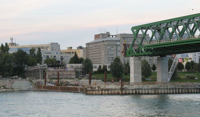 most do Petržalky z brehu Starého mesta a nový pilier