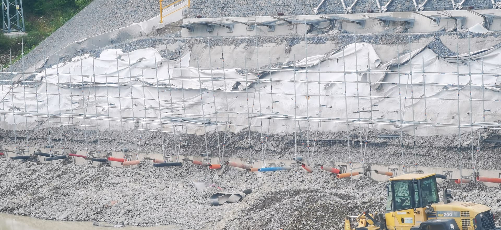 Fúha, vyzerá to, že počas dažďov im to ešte nedokončené celé padlo, akoby to nebolo prichytene o zadnú stenu. Zajtra skúsim zistiť, čo sa tam stalo.
