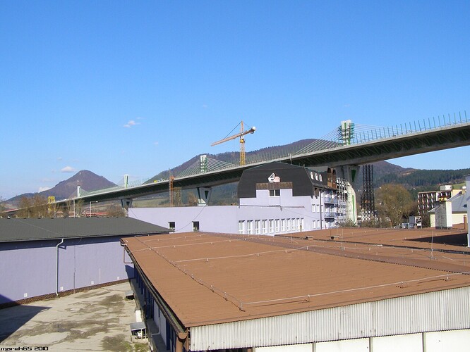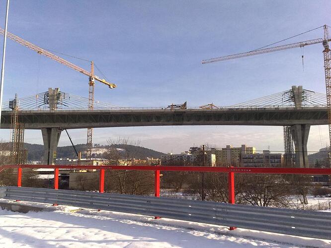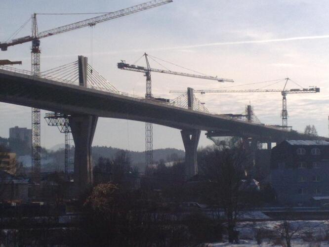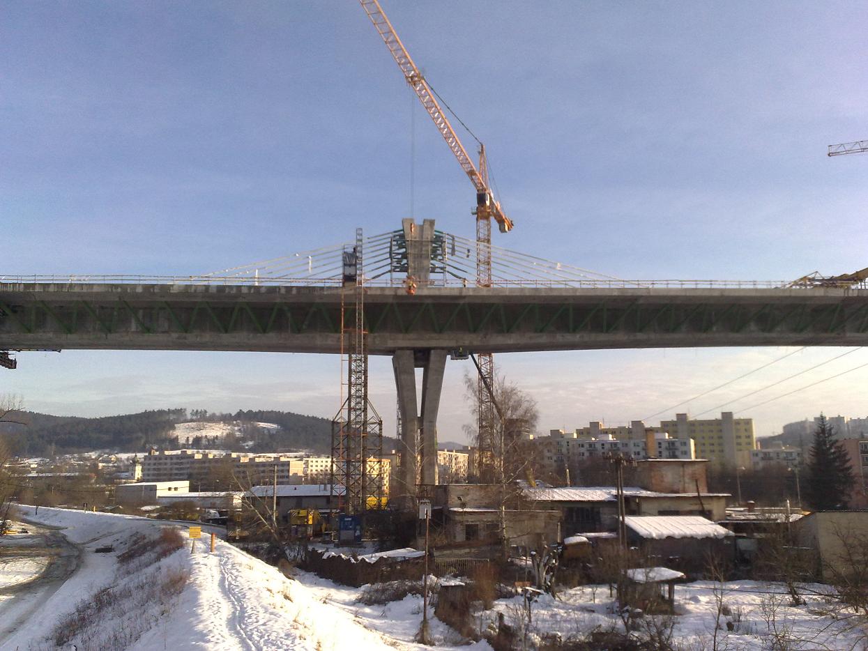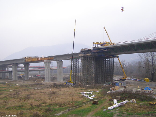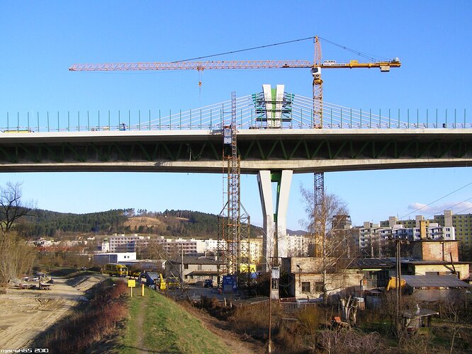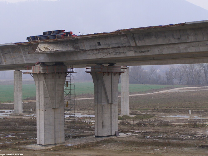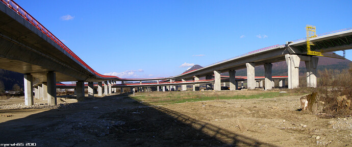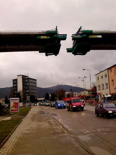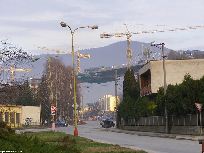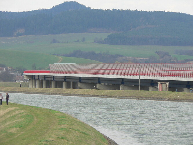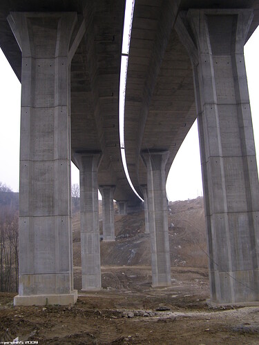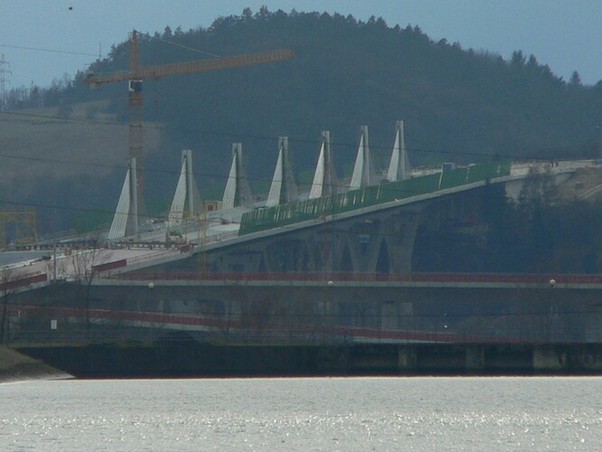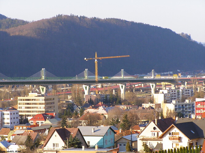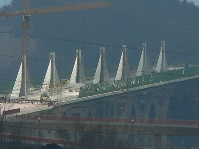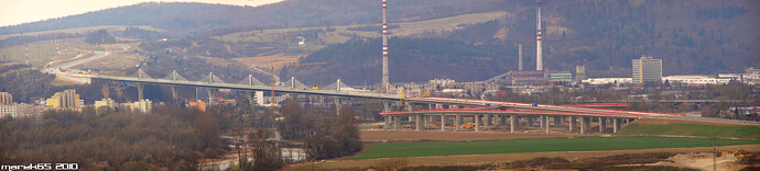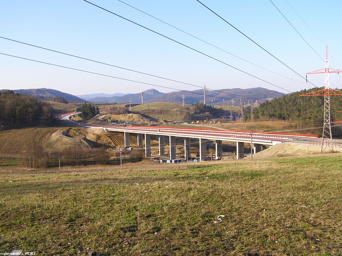 Estakáda z nezvyčajného pohľadu; fotené v Pov. Podhradí cca 2,5 km od estakády. Vzdialenosť/zoom/optika vytvára zaujímavé skreslenie