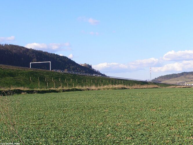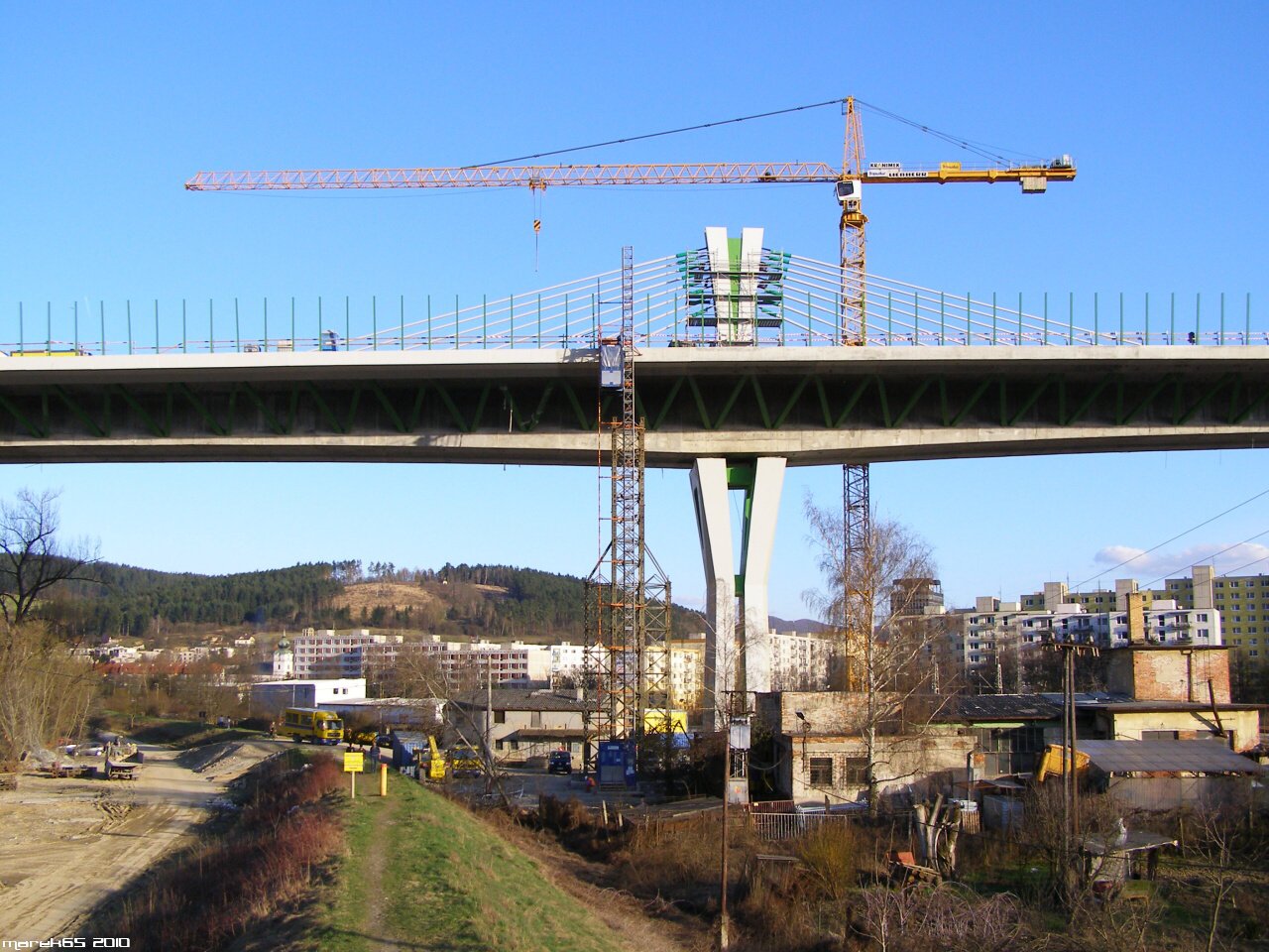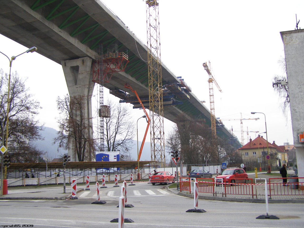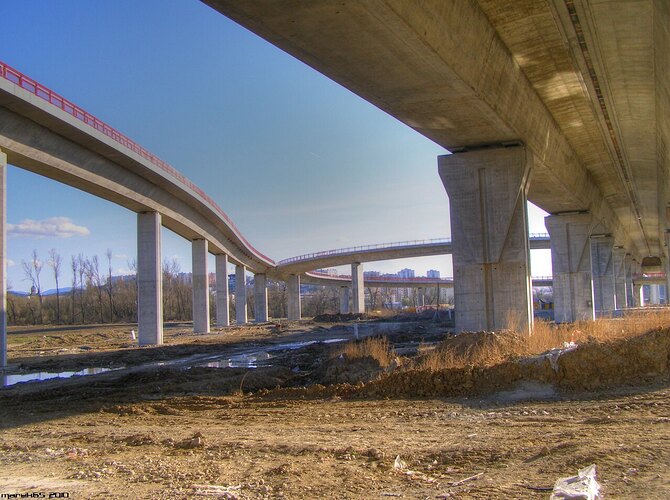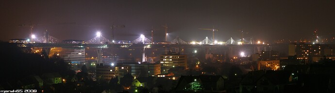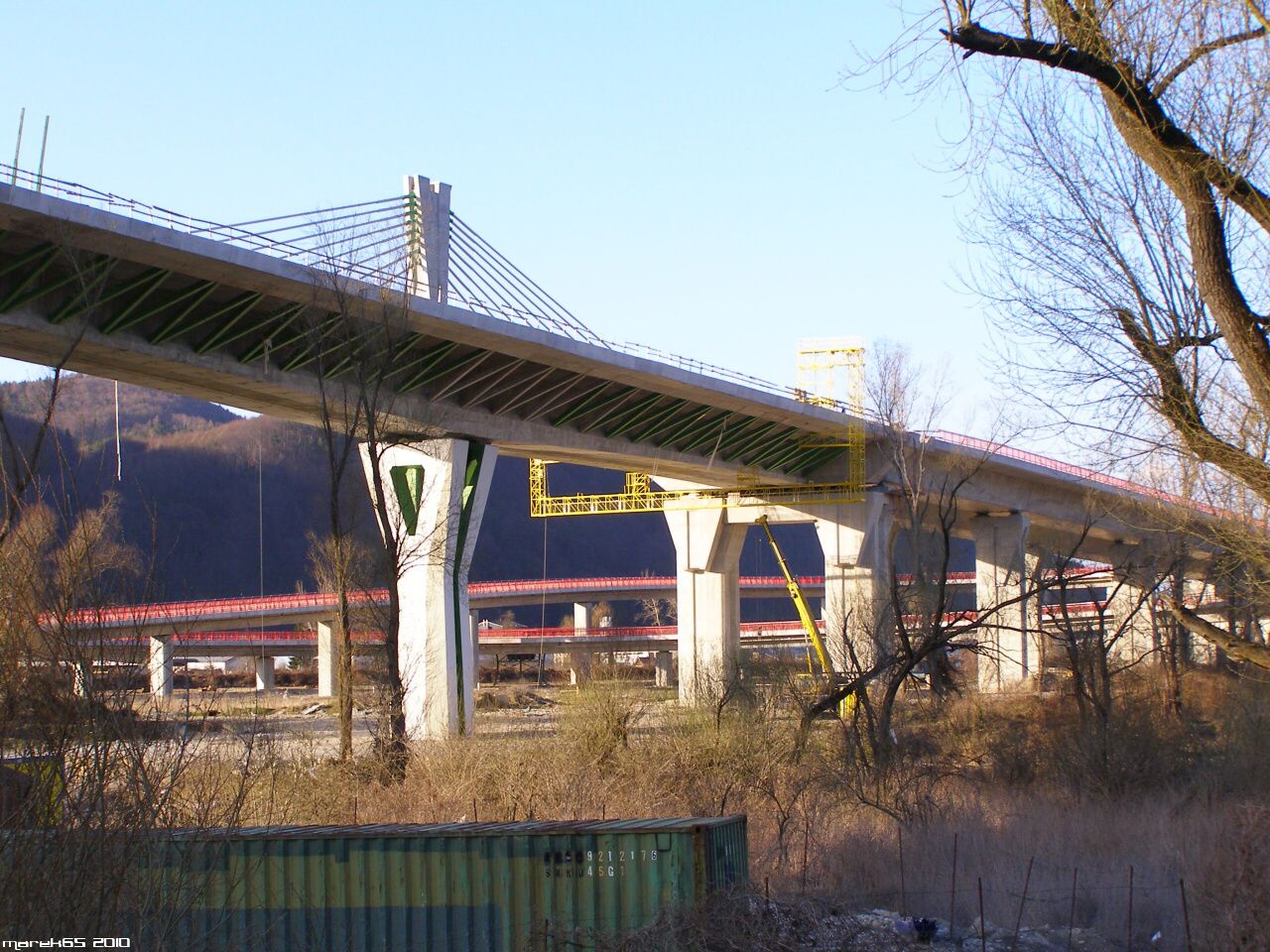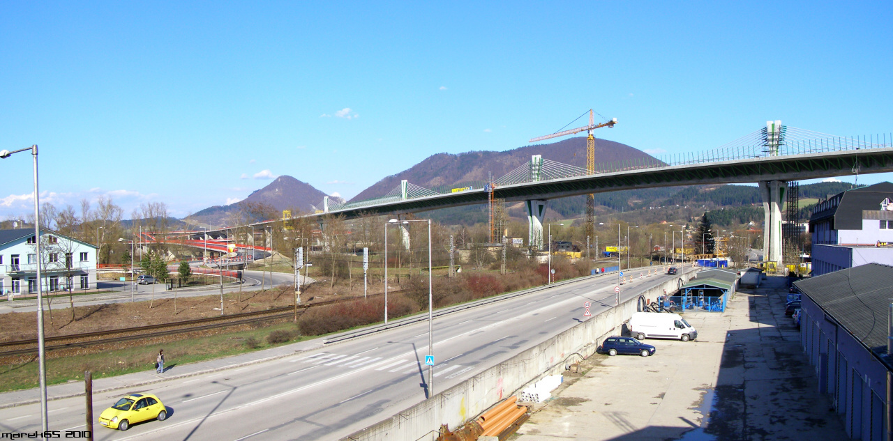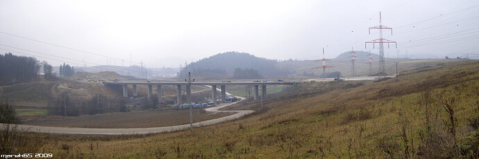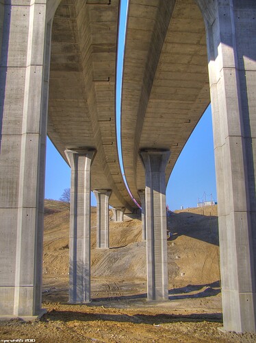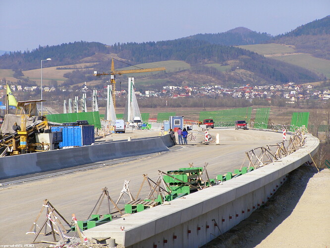 Estakáda z nezvyčajného pohľadu; fotené v Pov. Podhradí cca 2,5 km od estakády. Vzdialenosť/zoom/optika vytvára zaujímavé skreslenie