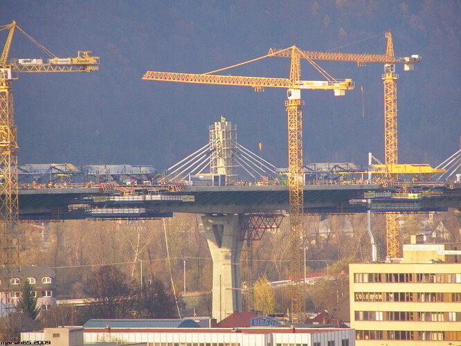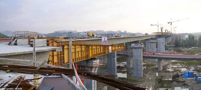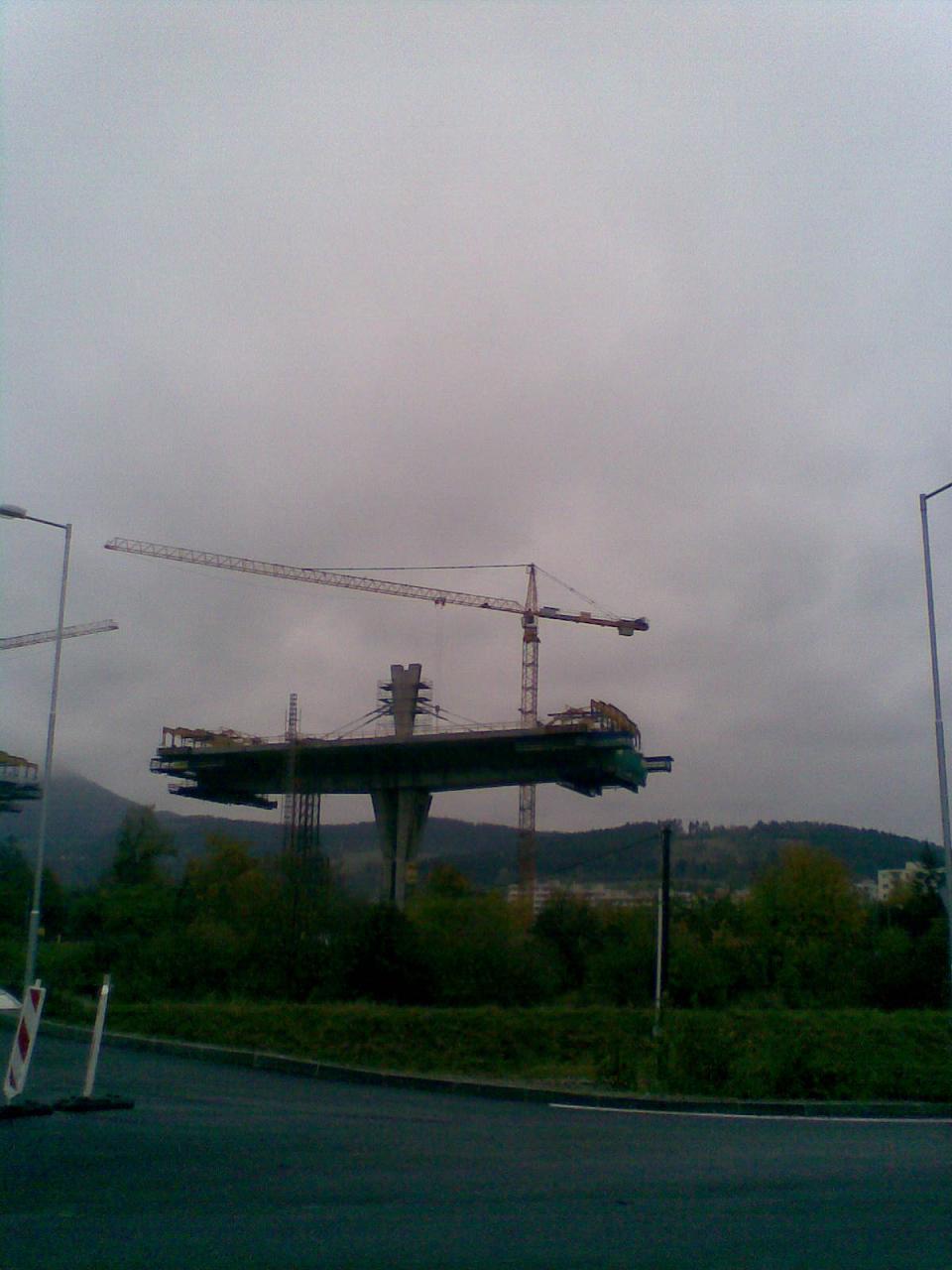 [Križovatka Centrum a prvý hotový pylón]