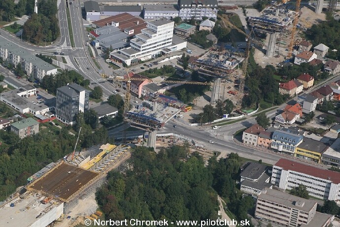 Križovatka Centrum a prvý hotový pylón. © Norbert Chromek - www.pilotclub.sk
