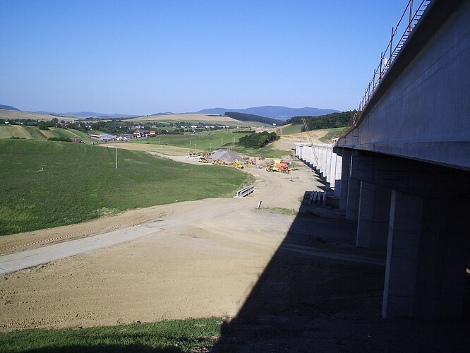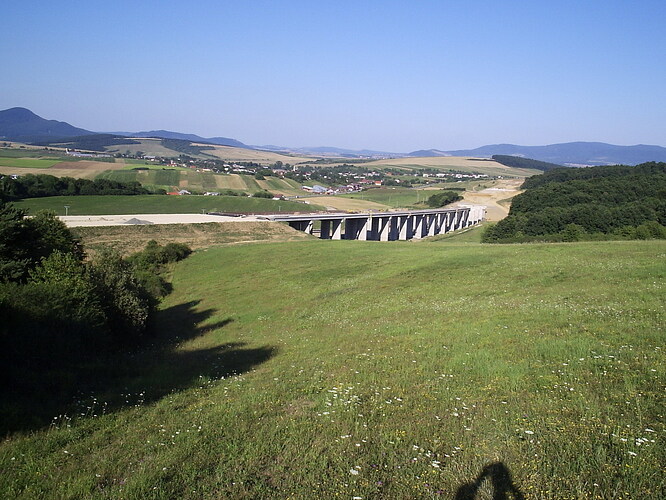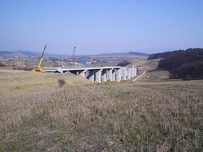 Most nad potokom Mala Svinka. Dlzka mosta bude 255 m.