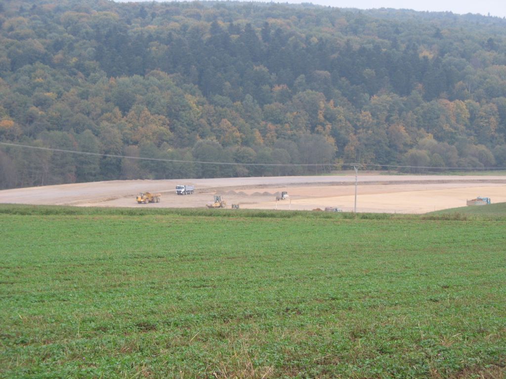 Budovanie nasypu. Pohlad od cesty Svinia - Kojatice.
