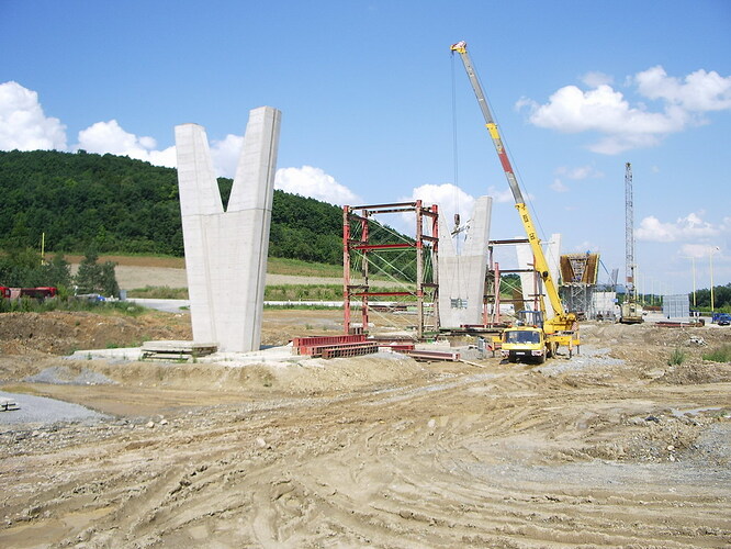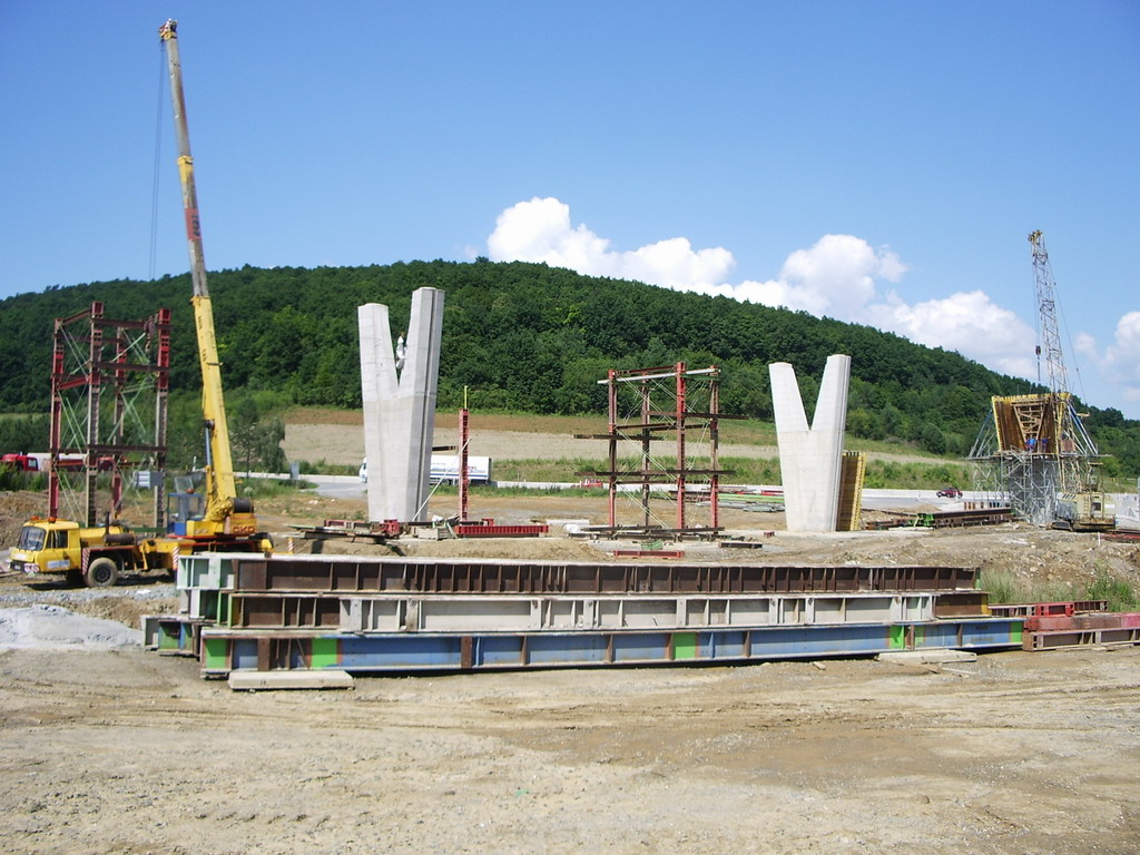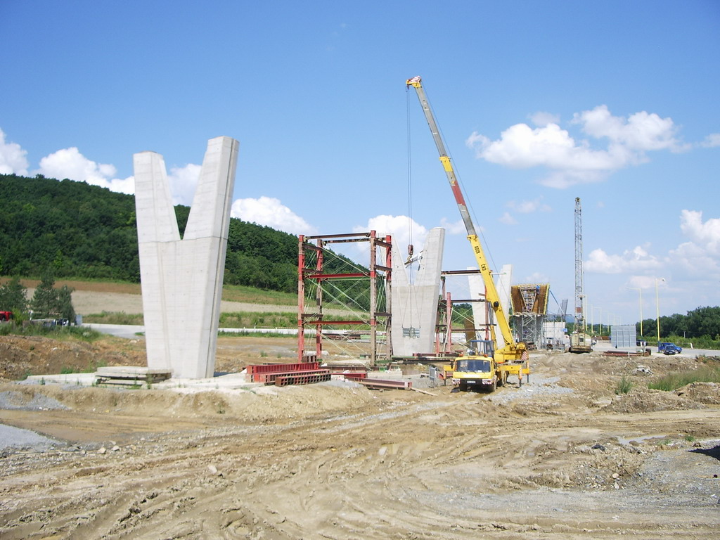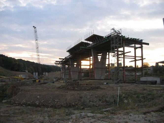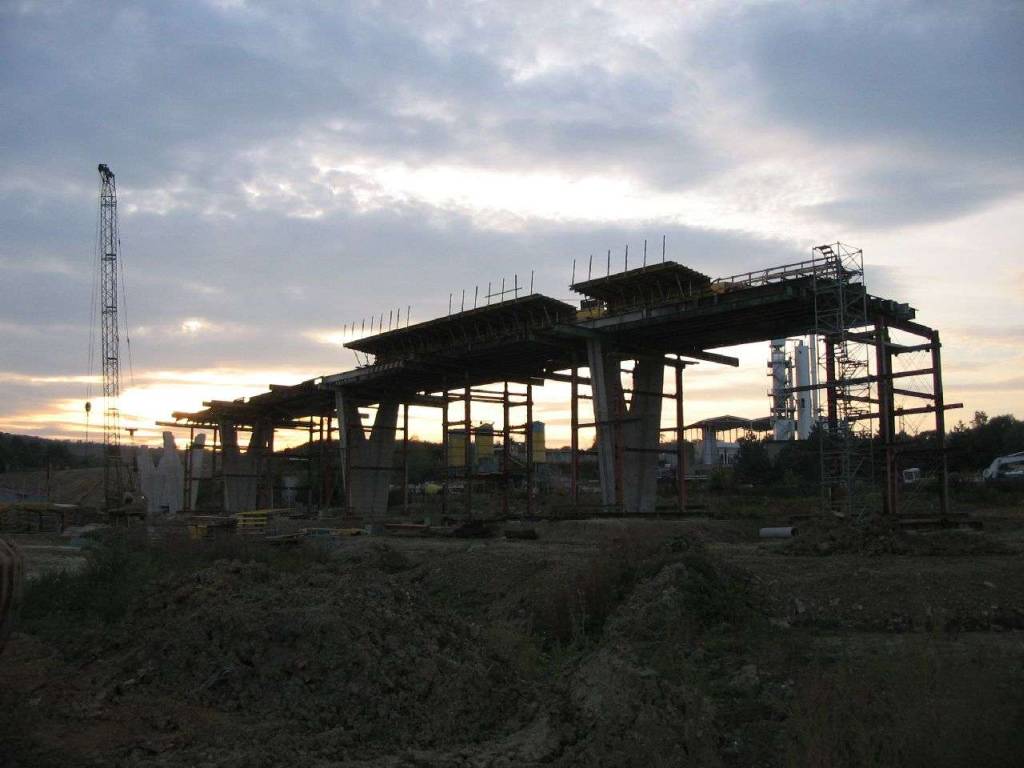 Práce na pylónoch mosta pre napojenie v smere z Prešova na dialnicu.