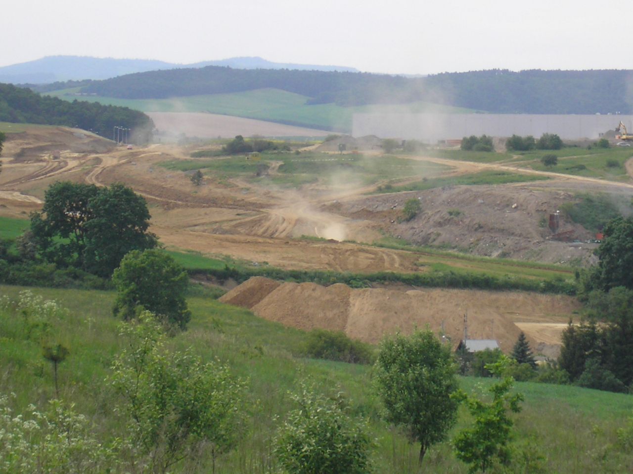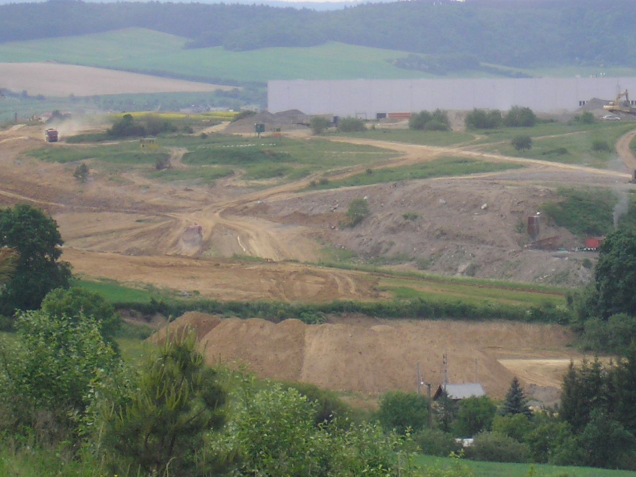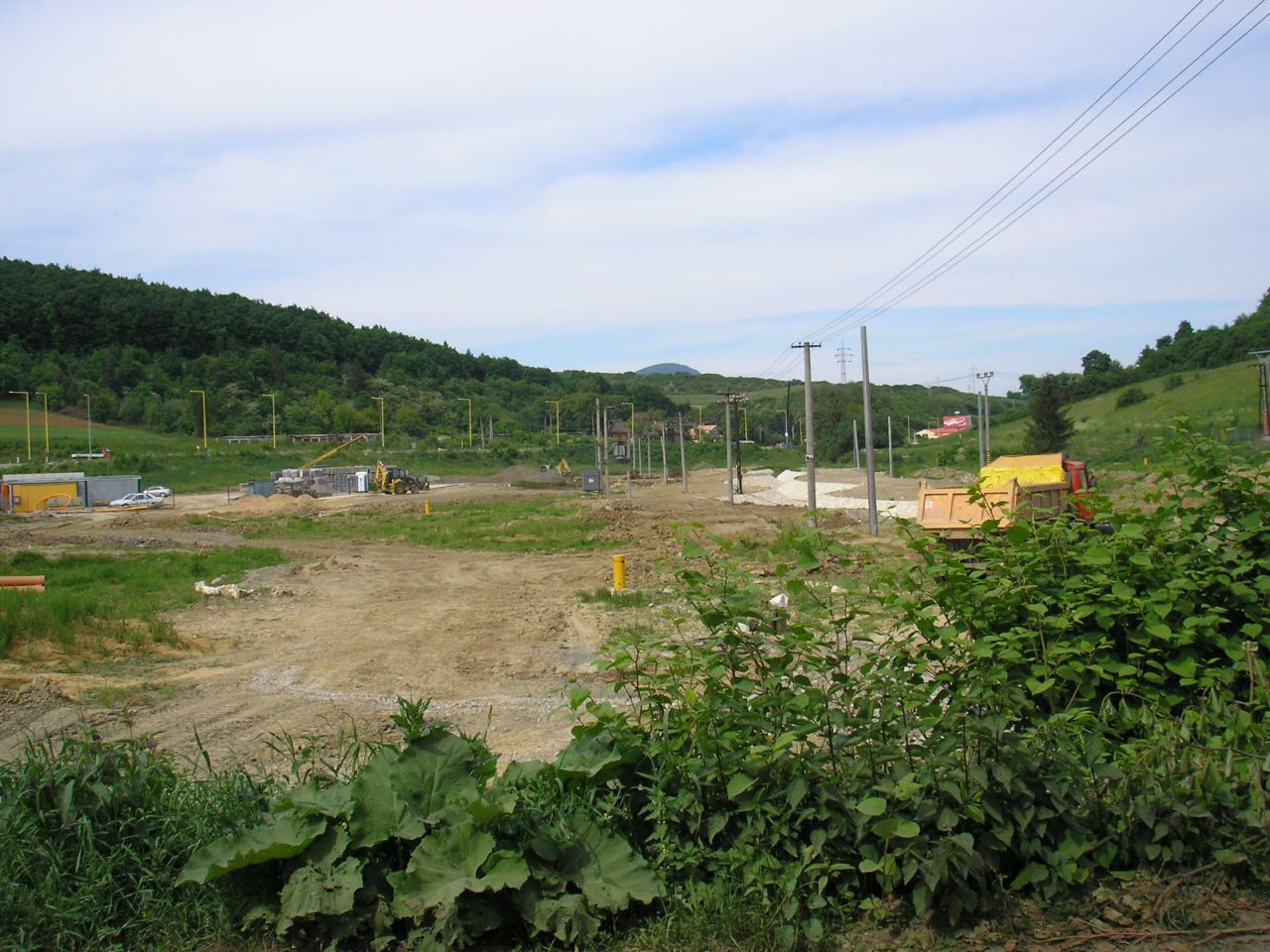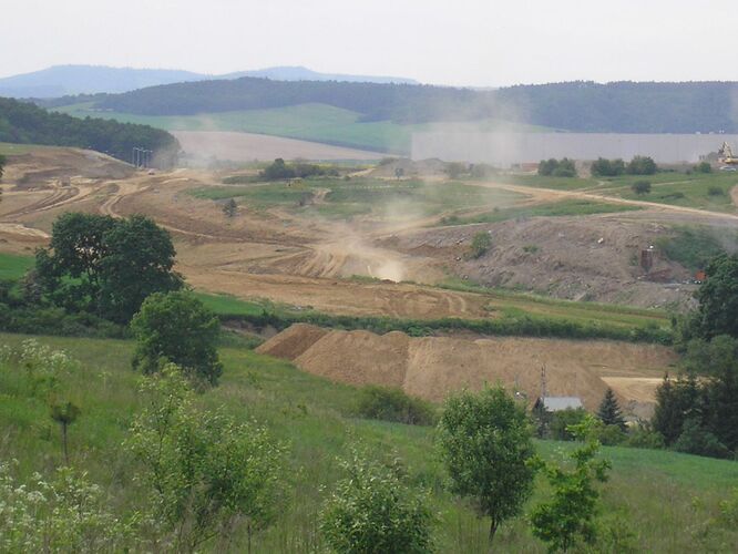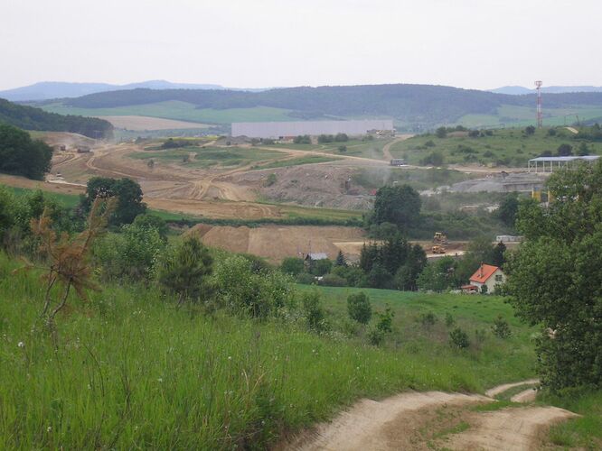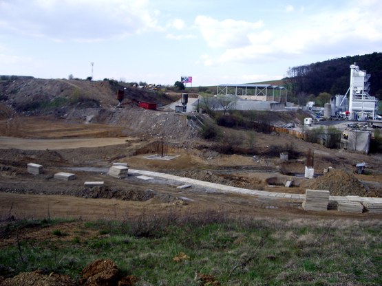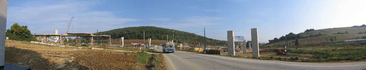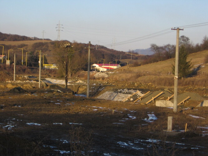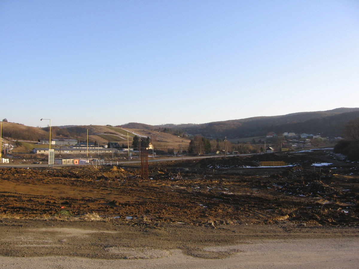Panorama na celé staveniště, pohled ze silnice na Margecany, vlevo směr na Poprad, vpravo do Prešova.