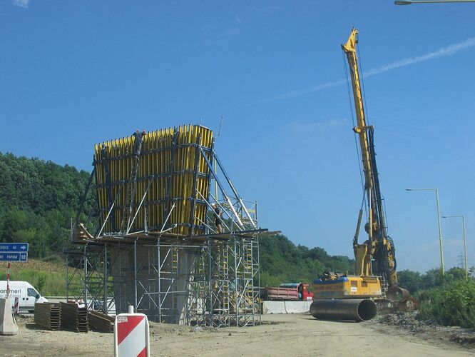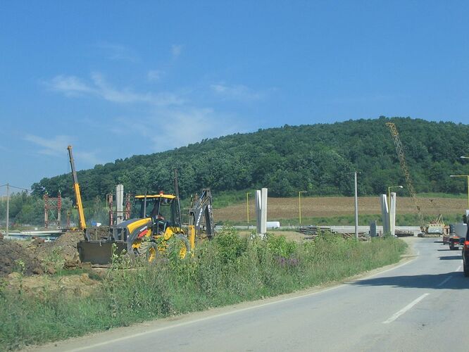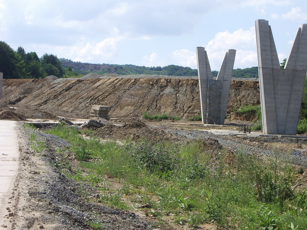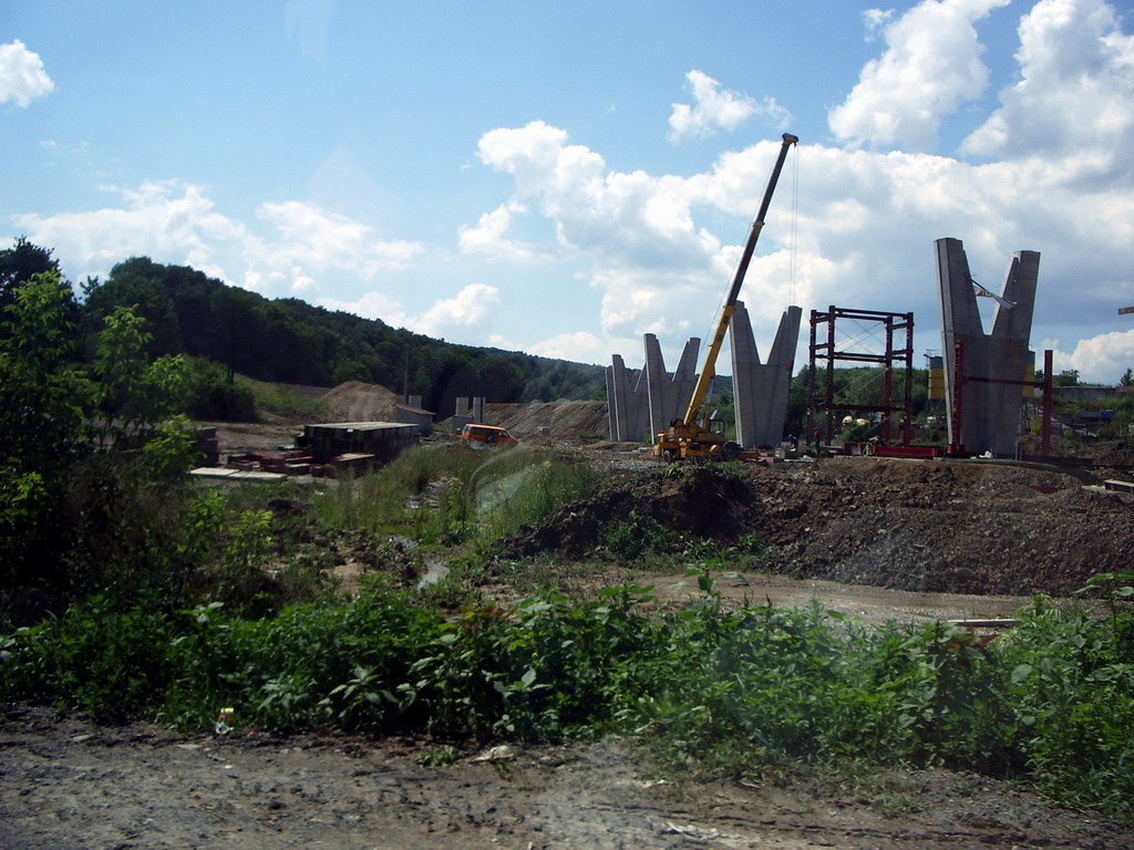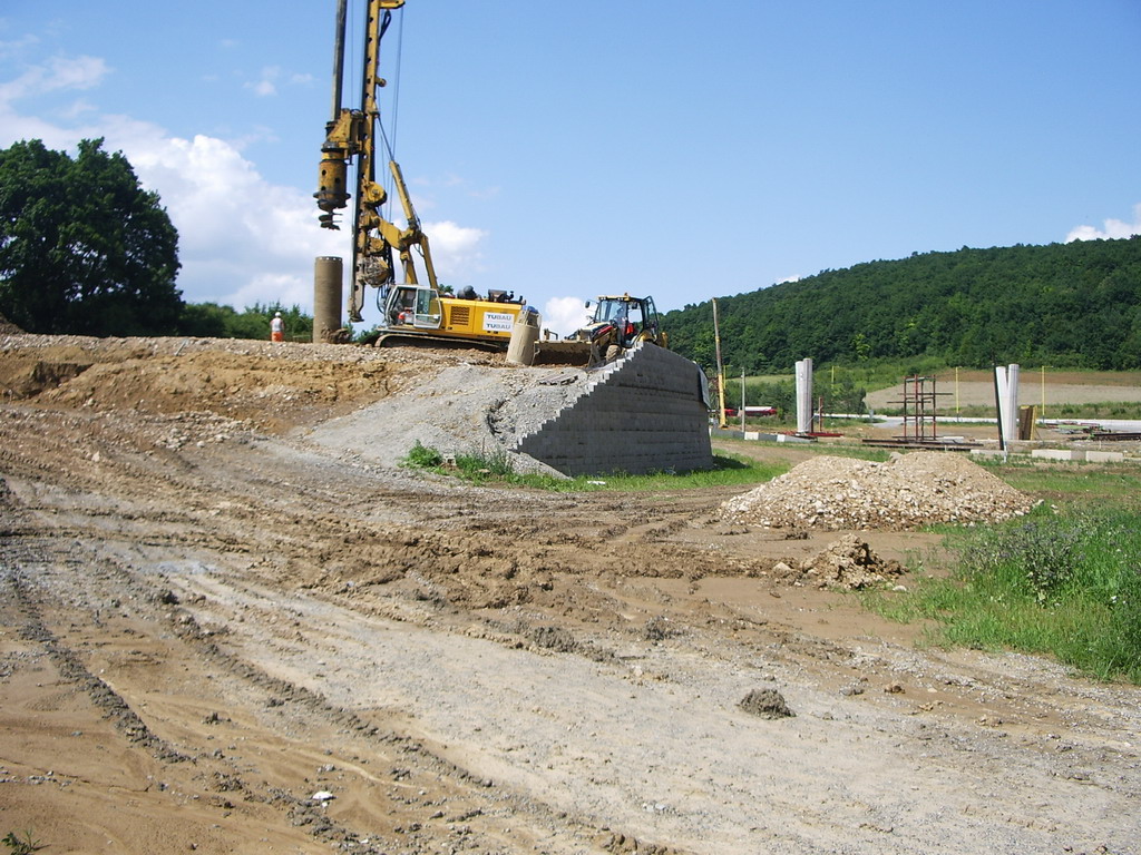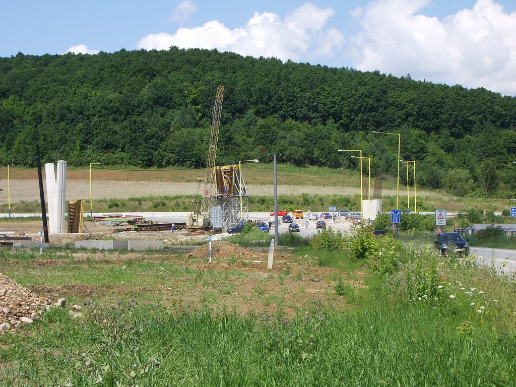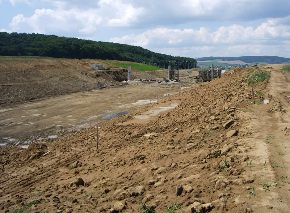 Diaľničný privádzač smer Prešov D1. Chystá sa už oporná konštrukcia a práce pokračujú aj v nedeľu(fotené 27.7.2008).