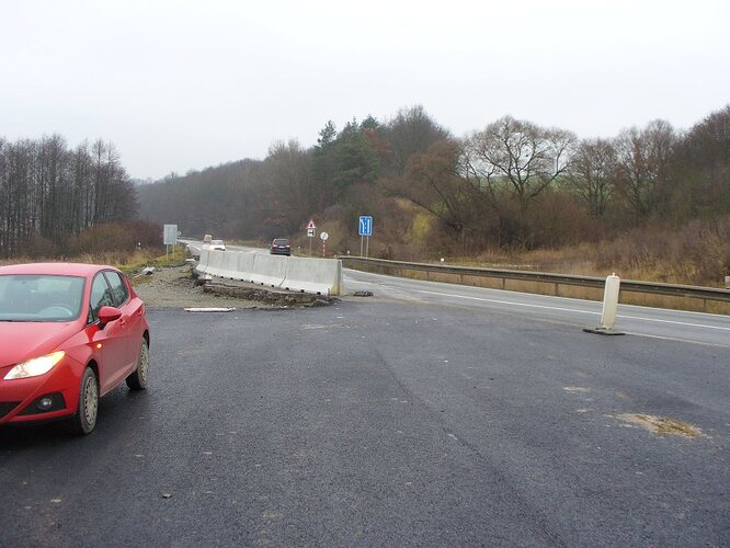 Vypadovka na Poprad. V strede je vidno odstranene zvodidla, takze sa da ocakavat presmerovanie premavky do jedneho profilu.