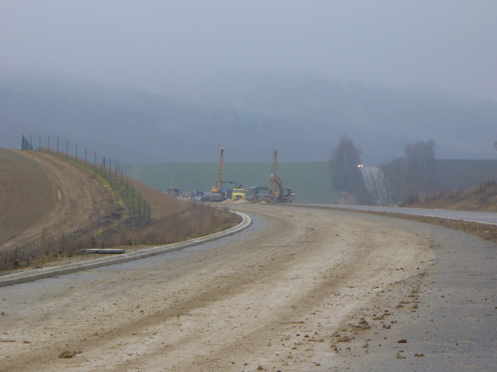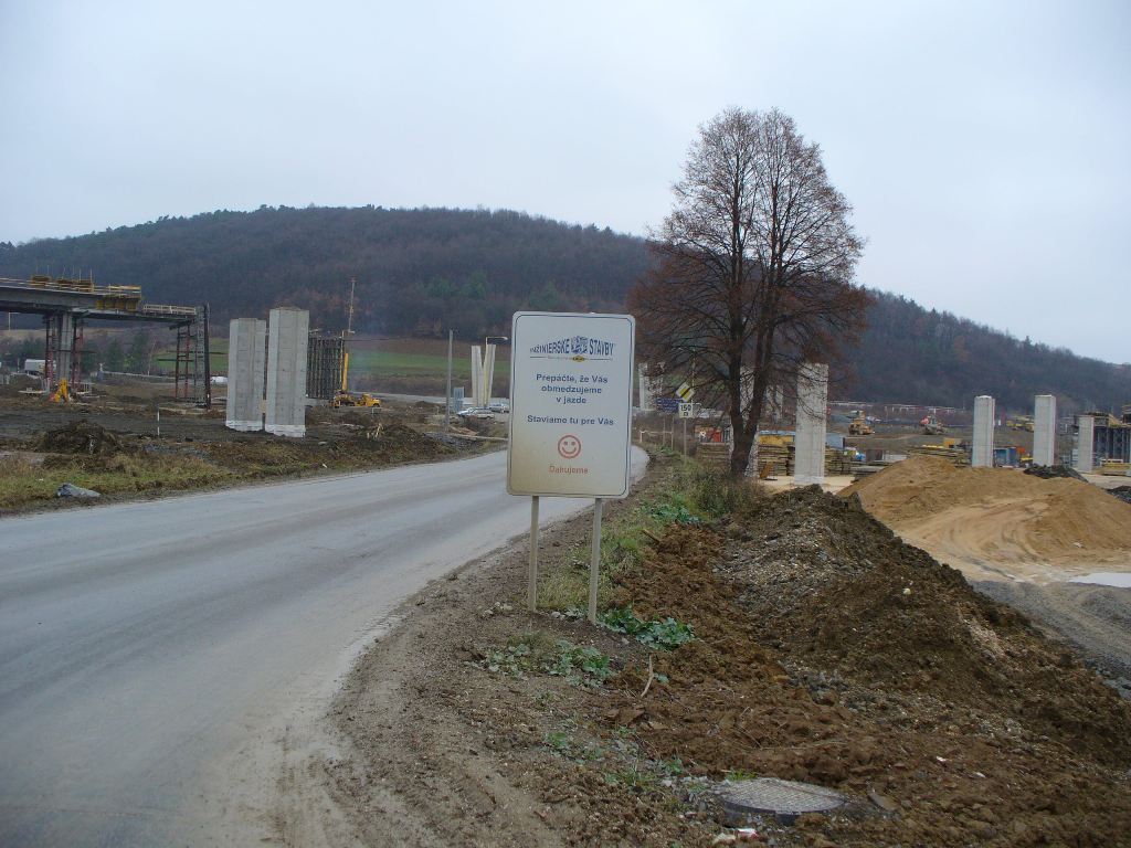 Takmer ziadne prace neprebiehaju na tomto objekte. Posledny usek pred napojenim na povodnu E50 smerom na PP. Usek na uz aj natiahnuty aj asfaltovy koberec treba uz len poslednu vrstvu.Oplotenie je uz na tomto useku hotove.