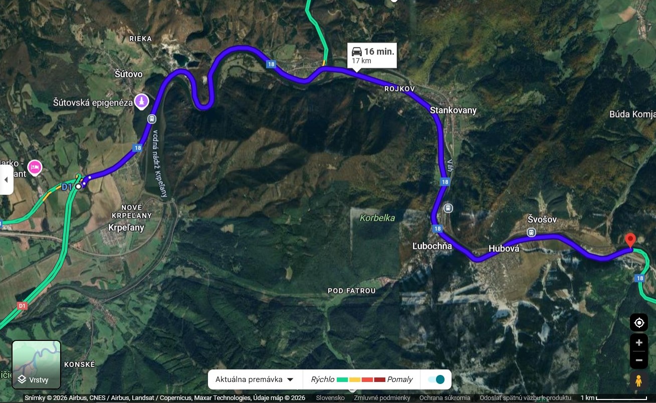Hubová → Rojkov → Kraľovany → Šutovo, skoro až na D1 Turany.