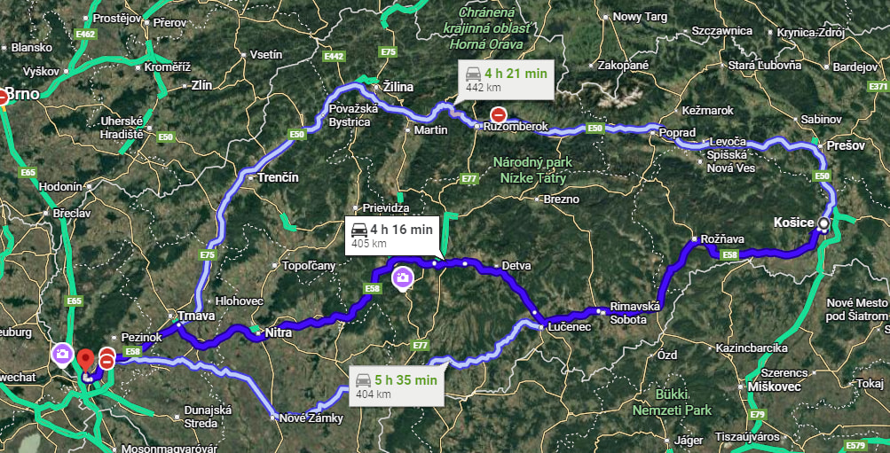 Mam kolegu z Kosic. Ked isiel autom do Bratislavy, tak zasadne len juznou trasou.