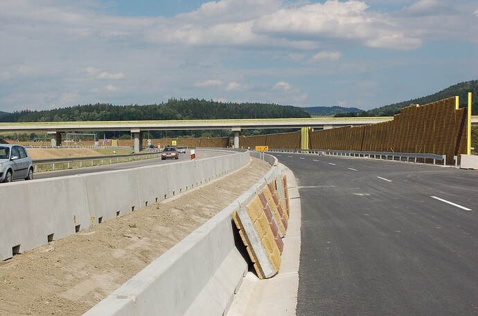 Vyasfaltovaný druhý polprofil s protihlukovou stenou chrániacou obec Dolný Hričov