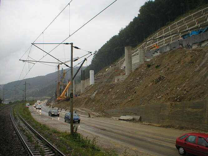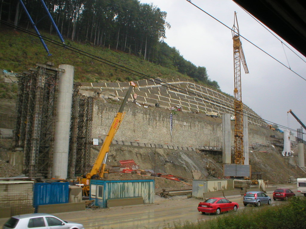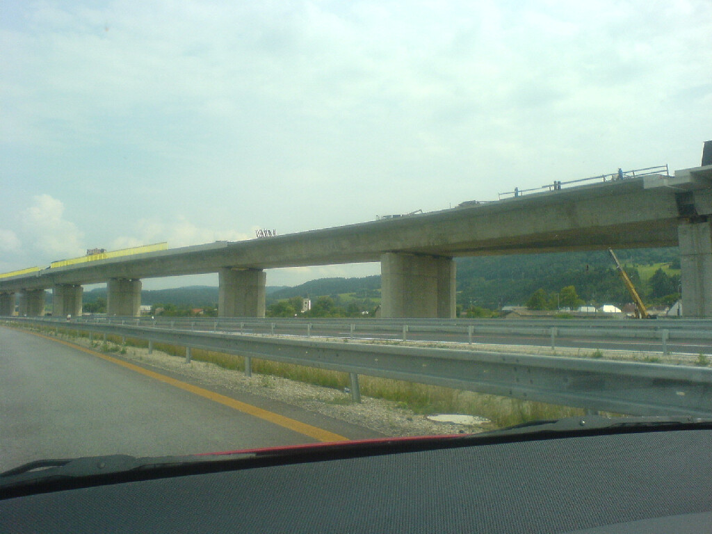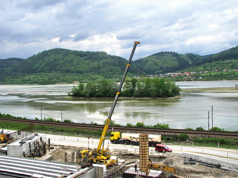 Stavba diaľnice D3 od Žiliny smerom k Hornému Hričovu popri Hričovskej priehrade. Tento úsek diaľnice je na celom úseku z Bratislavy do Žiliny najťažší.