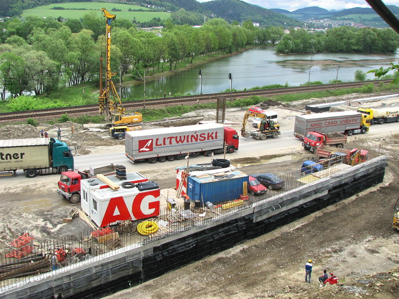 Pracuje sa nepretržite cez soboty a nedele v sťažených podmienkach a za hustej premávky na ceste I/18. Za železničnou traťou sú rybníky v Strážove na okraji Vodnej nádrže Hričov.