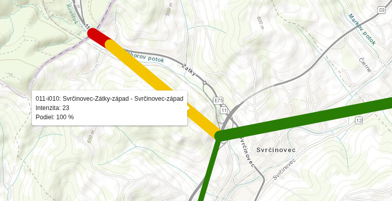 Niektoré hodnoty sú tam zaujímavé, napríklad 23 nákladných vozidiel na I/11 medzi križovatkou Svrčinovec a križovatkou pri hranici ![]()