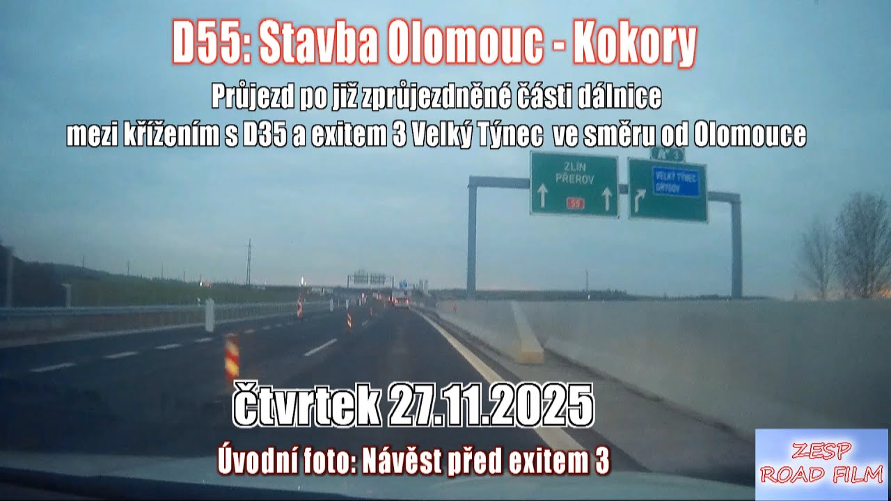 Na D55 dnes otvorili usek Olomouc - Kokory, zacat sa stavalo 04/2023. Zaciatok stavby ohrozovali sudy s miestnymi polnohospodarmi, co musel ukoncit az ustavny sud.