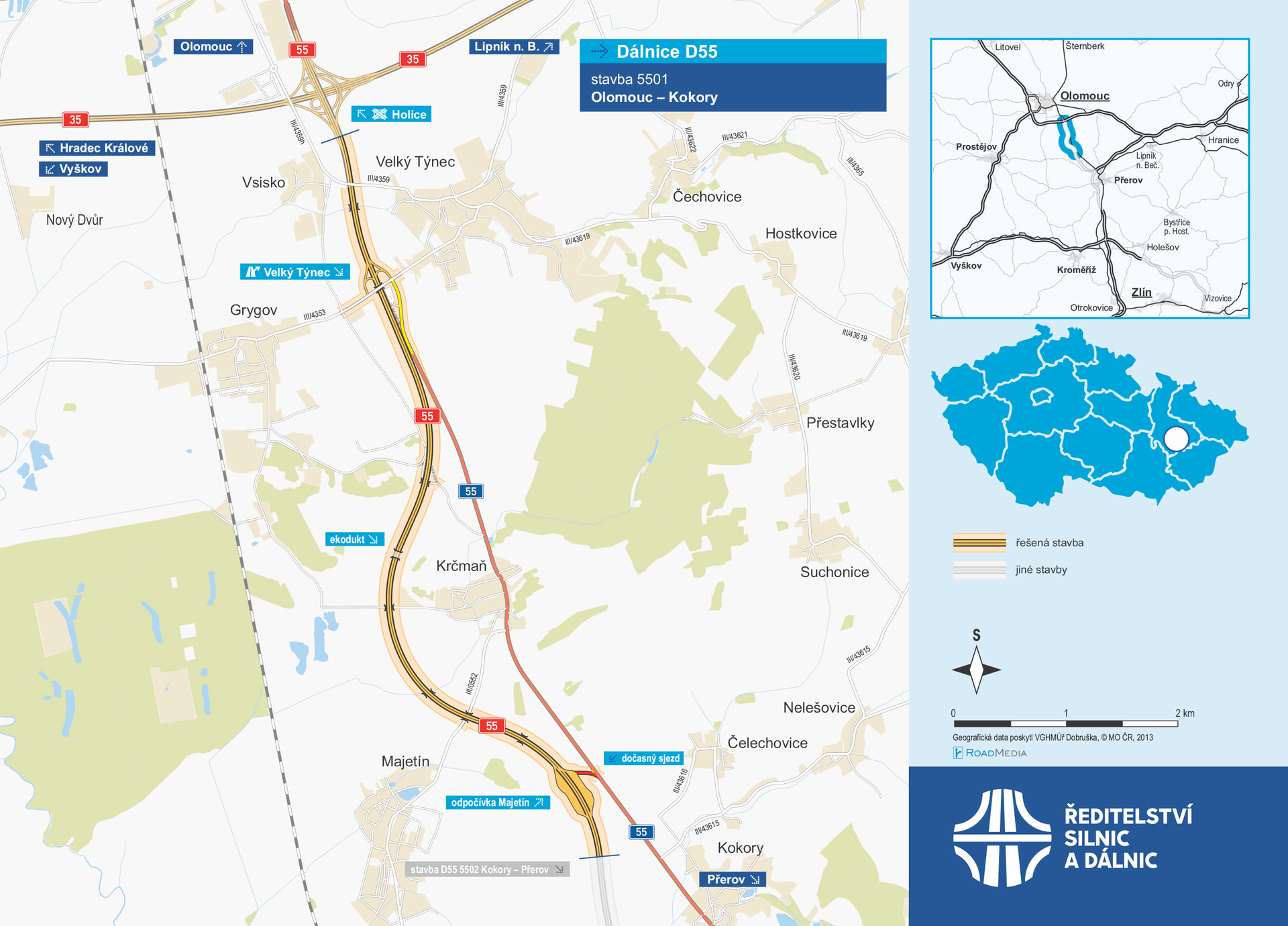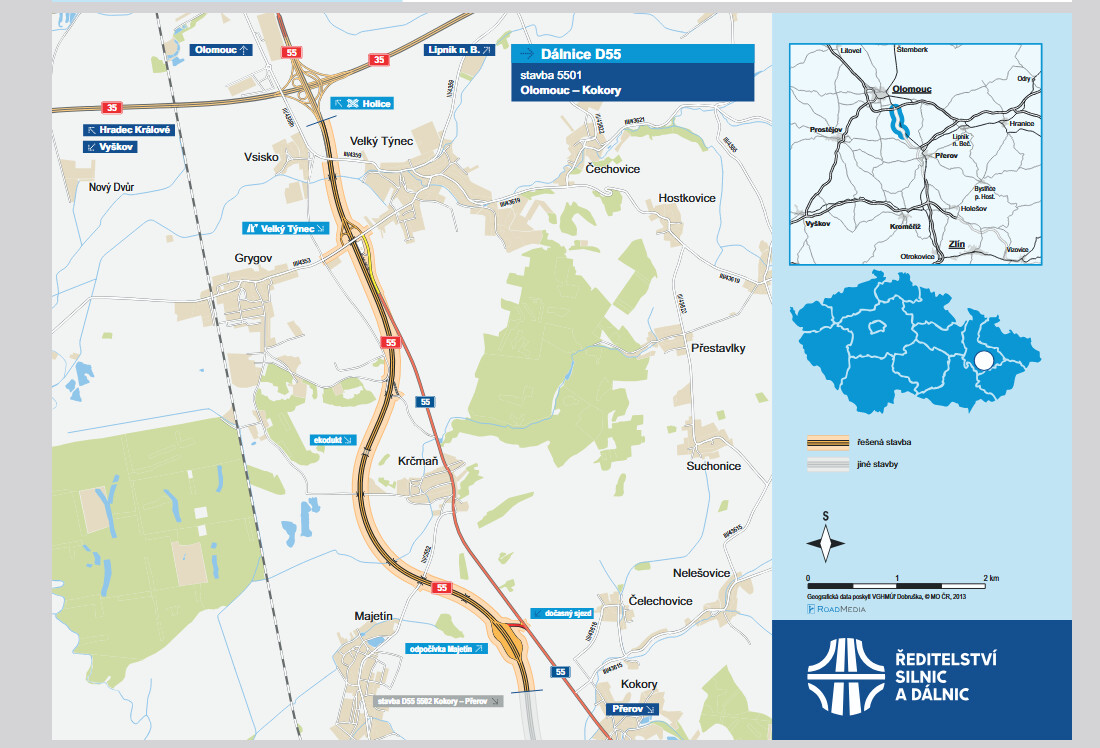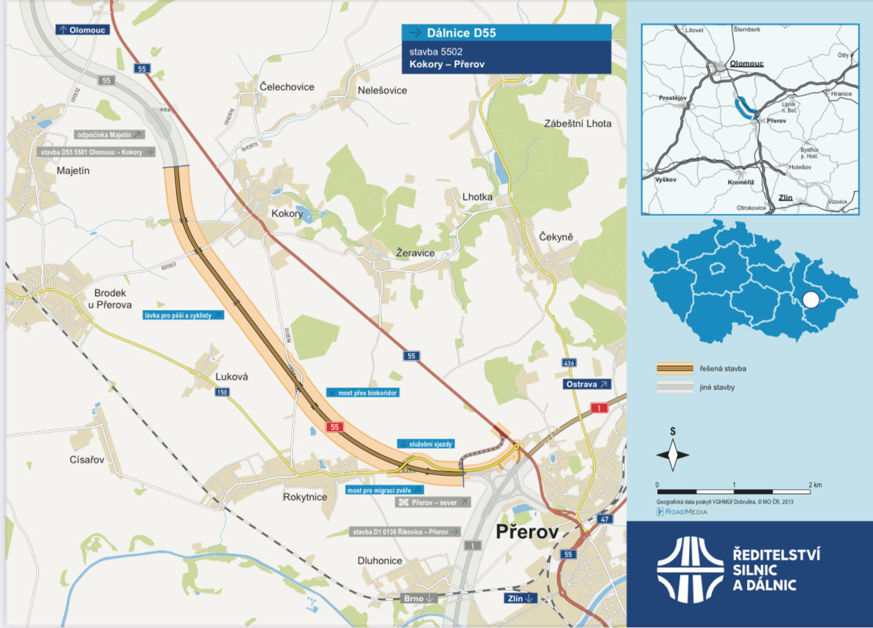 ŘSD zahájilo výběrové řízení na zhotovitele stavby “D55 5502 Kokory - Přerov”. Předpokládaná hodnota zakázky na stavbu D55 délky 6 km je 2 454 mil. Kč bez DPH. Na stavbu je vydáno SP v právní moci, dokončuje se majetkoprávní příprava a probíhá archeologický průzkum.