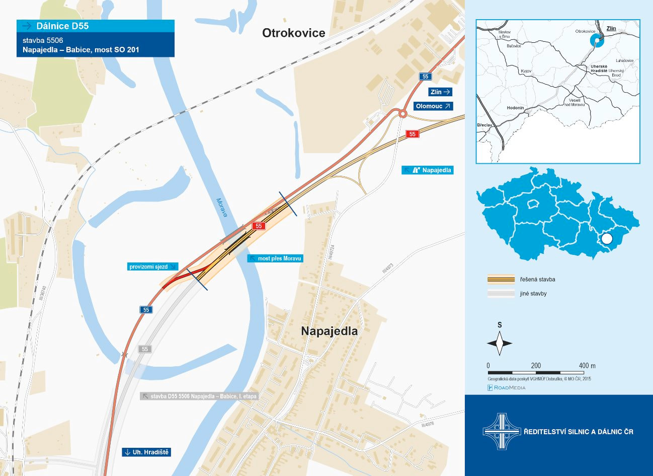 Na D55 dnes sprevadzkovali most cez rieku Moravu, vdaka comu je D55 dlhsia o cca 500m zakoncena docasnym zjazdom na I/55.