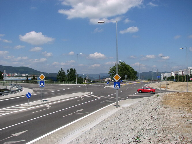 Po dokončení DP bude prichádzať do kruhovej križovatky aj vetva z Lietavskej Lúčky. Vpravo je obchodné centrum METRO a vľavo príjazd na cestu I/64, centra a priemyselnú zónu. Oproti je sídlisko Solinky.