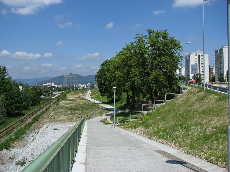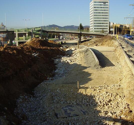 Fotené pod budúcim premostením ponad Rajeckú cestu.Vľavo budúca zastávka autobusov v mieste zaniknutej odbočky cez zrušené železničné priecestie na Kamennú ulicu.