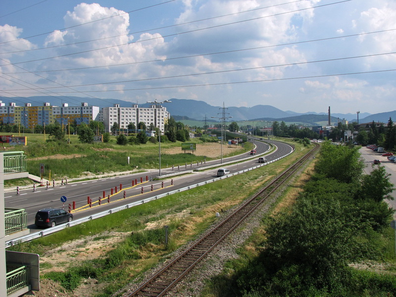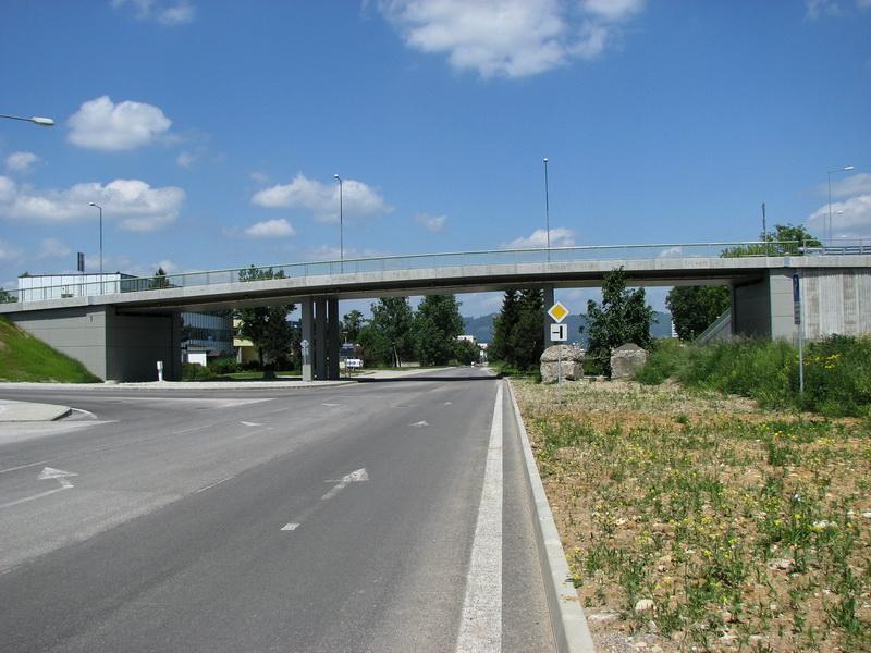 Mostné prepojenie z križovatky Solinky do priemyselnej zóny (vľavo) ponad železničnú trať a zaústenie do mestskej komunikácie.