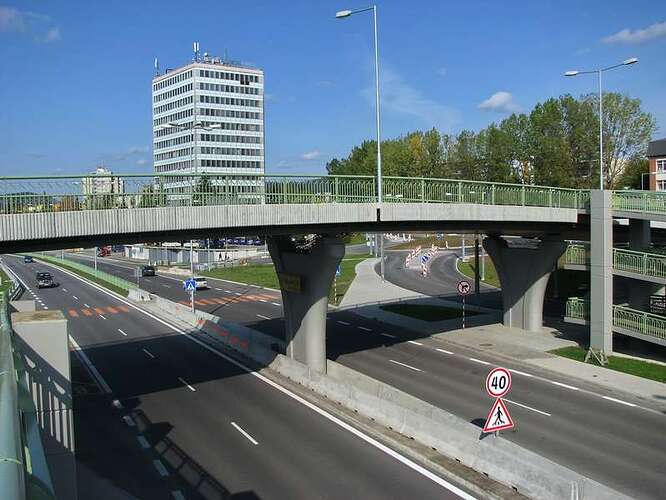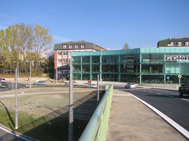 Mostná prepojenie z Kamennej ulice na sídlisko Hliny ponad železnicu, DP a dve mestské komunikácie. Pre chodcov a imobilných boli od zastávok MHD vybudované rampy a schody na mostné prepojenie. Križovatka, vrátane mostného prepojenia, bola otvorená 24.10.2008.