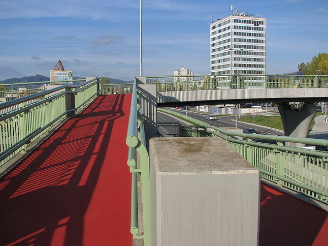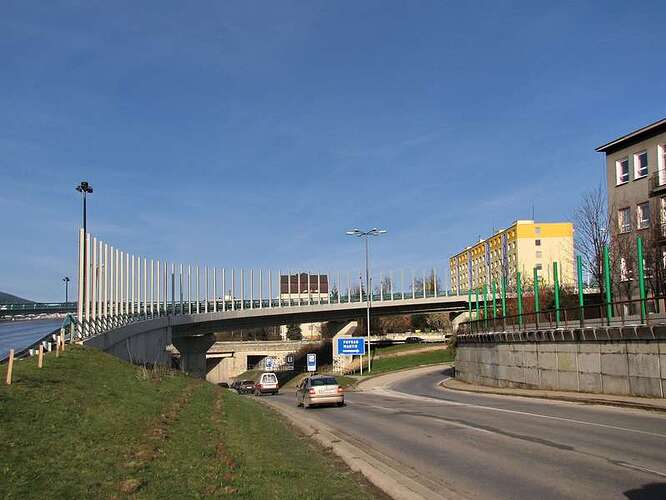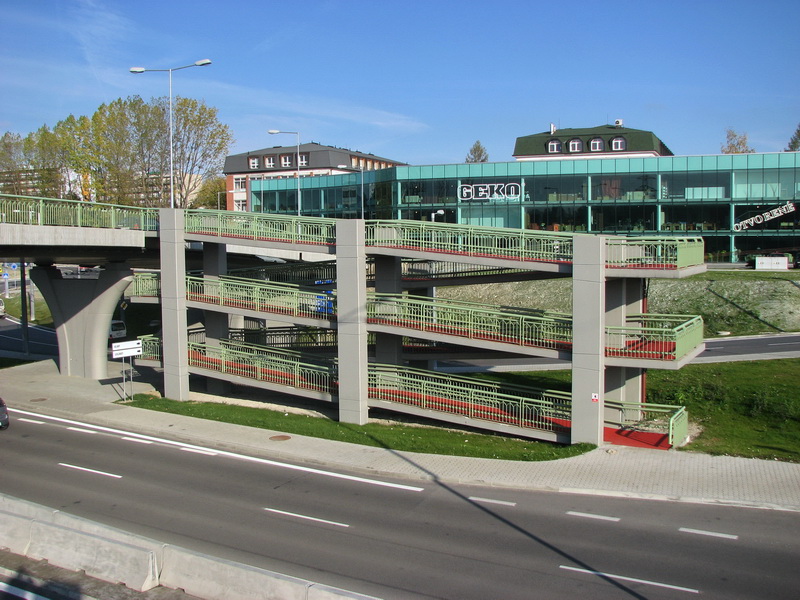 Bezpečné prechádzanie chodcov ponad DP, železnicu a zo zastávok MHD je zabezpečený cez mostné prepojenie s vybudovanými schodmi a rampami.