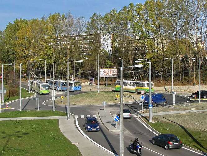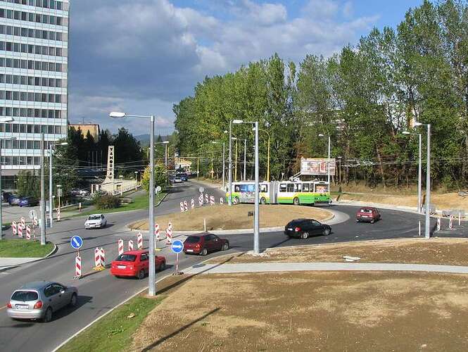 Kruhová križovatka postavená medzi dopravne zaťaženú mestskú komunikáciu s trolejbusovou dopravou, kde navyše zaúsťuje mostné prepojenie z Kamennej ulice a vjazd s výjazdom na jeden dvojpruh DP.