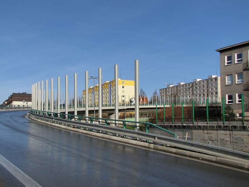 Výstavba protihlukových stien v križovatke ciest I/18 a I/64 v intraviláne Žiliny na začiatku DP Žilina - LL. Hore prechádza mimoúrovňová vetva z cesty I/18 od Popradu na cestu I/64 smerom do Prievidze. Mostný objekt v križovatke je dlhý 187,6 m.