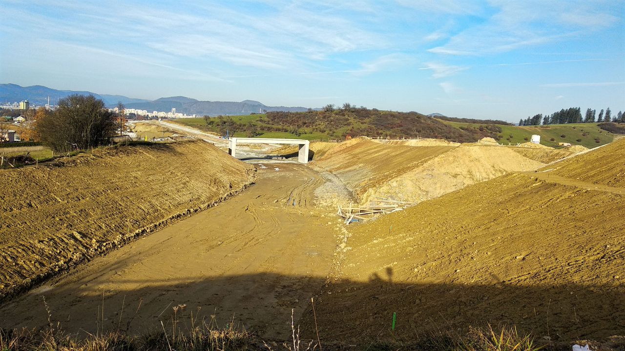 [1.11.18 - Bytčica - zárez pod budúcim mostom, pohlad na ZA]
