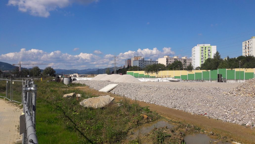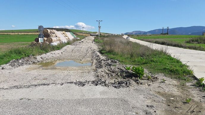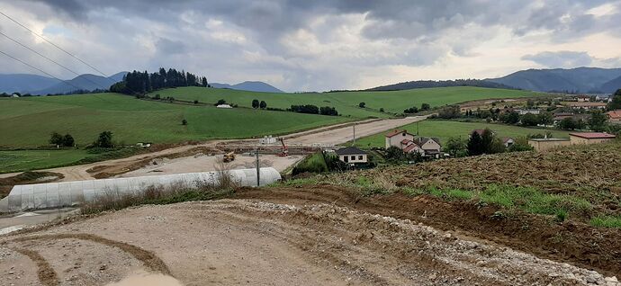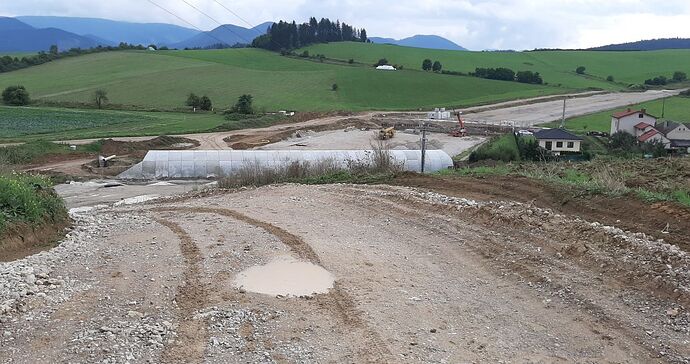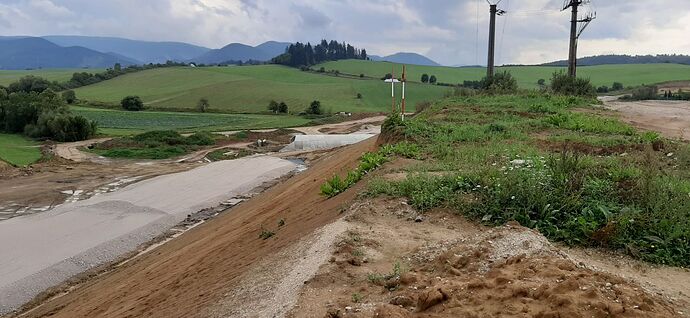 [12.9.19 - vlavo povodna cesta Bytcica-Rosina, vpravo rozobrata prelozka]