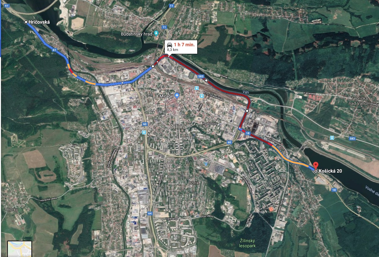 [prejazd Zilinou 18.04.19 o 19:20 1h7m 8,3 km]
