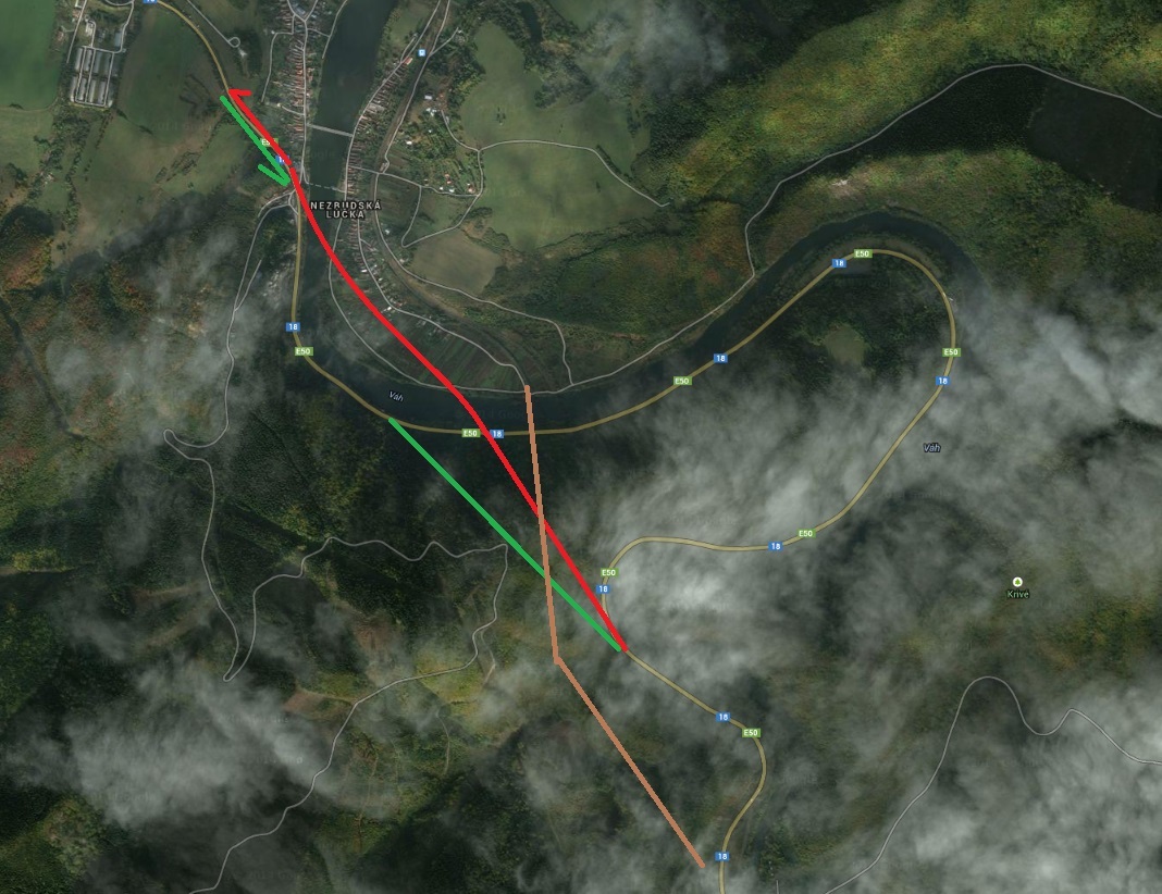 tu pekne vidno, ze terajsia I/18 je "nalepena" na estakadach pri domasinskom meandri