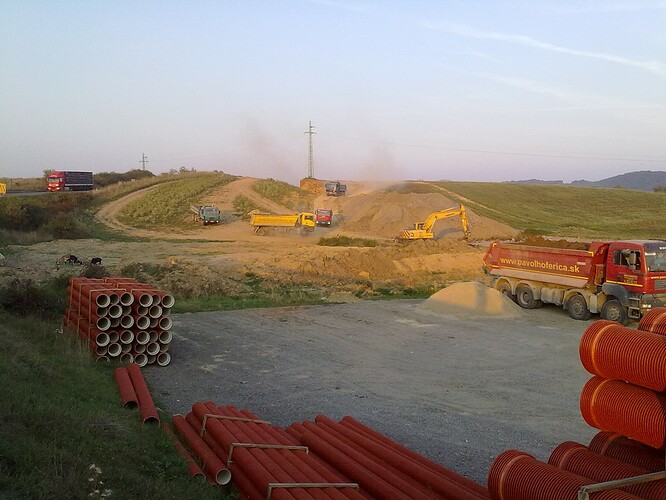 odbočka na Zacharovce, začiatok obchvatu RS - v pozadi vľavo odbočka do RS.