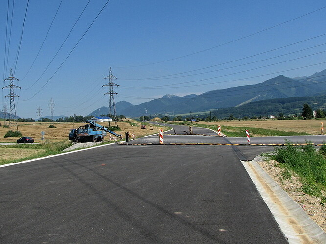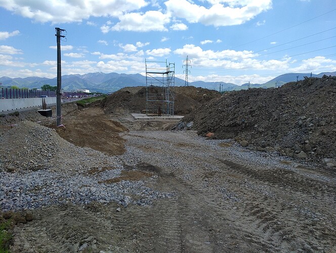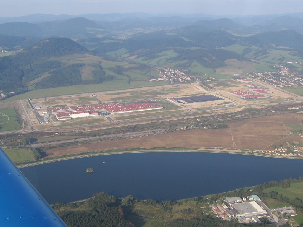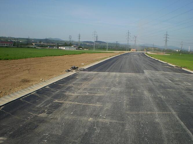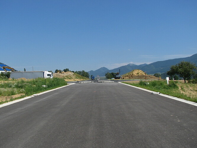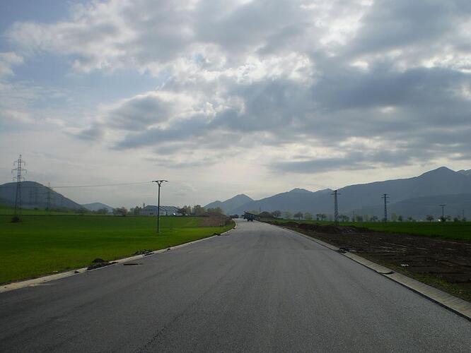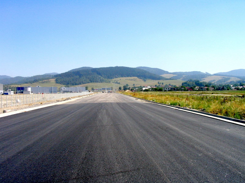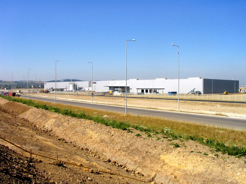 Výstavba východnej štvorpruhovej komunikácie v júli 2006, ktorá spája štátnu cestu II/583 s novou preložkou štátnej cesty II/583 s celkovou dĺžkou 1,2 km. Po pravej strane sú dodávateľské závody automobilky HYSCO a za ním MOBIS Slovakia. Vľavo je obec Gbeľany oddelená protihlukovým valom.