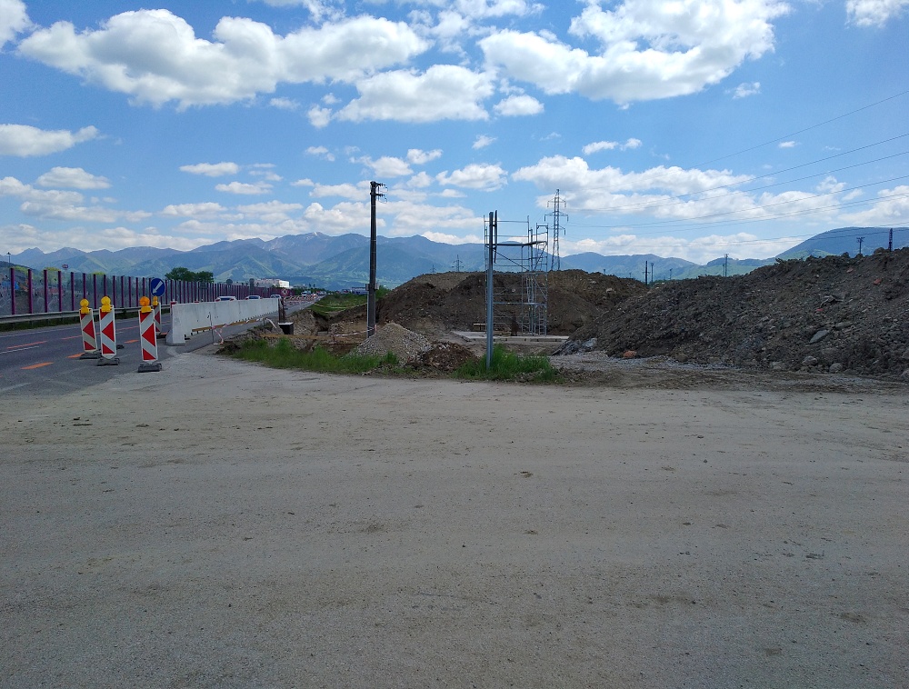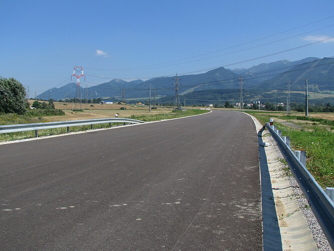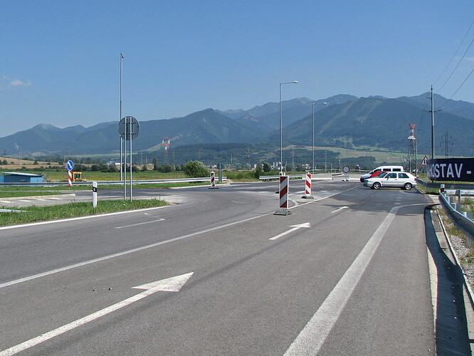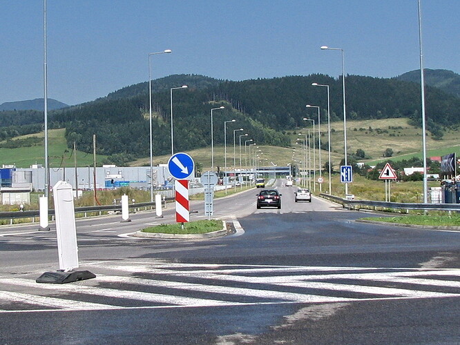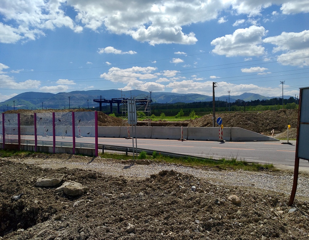Novovybudovaná komunikácia (preložka štátnej cesty II/583) vedie zo Žiliny, prechádza okolo automobilky KIA Motors a končí napojením na východnú komunikáciu (vľavo), ktorá pokračuje na pôvodnú cestu II/583 pred Gbeľanmi. Vpredu je začiatok stavby obchvatu Gbelian.