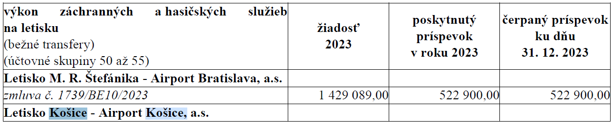 - príjmy z dividend Letiska Košice – Košice Airport vo výške 345 787,50 eur,