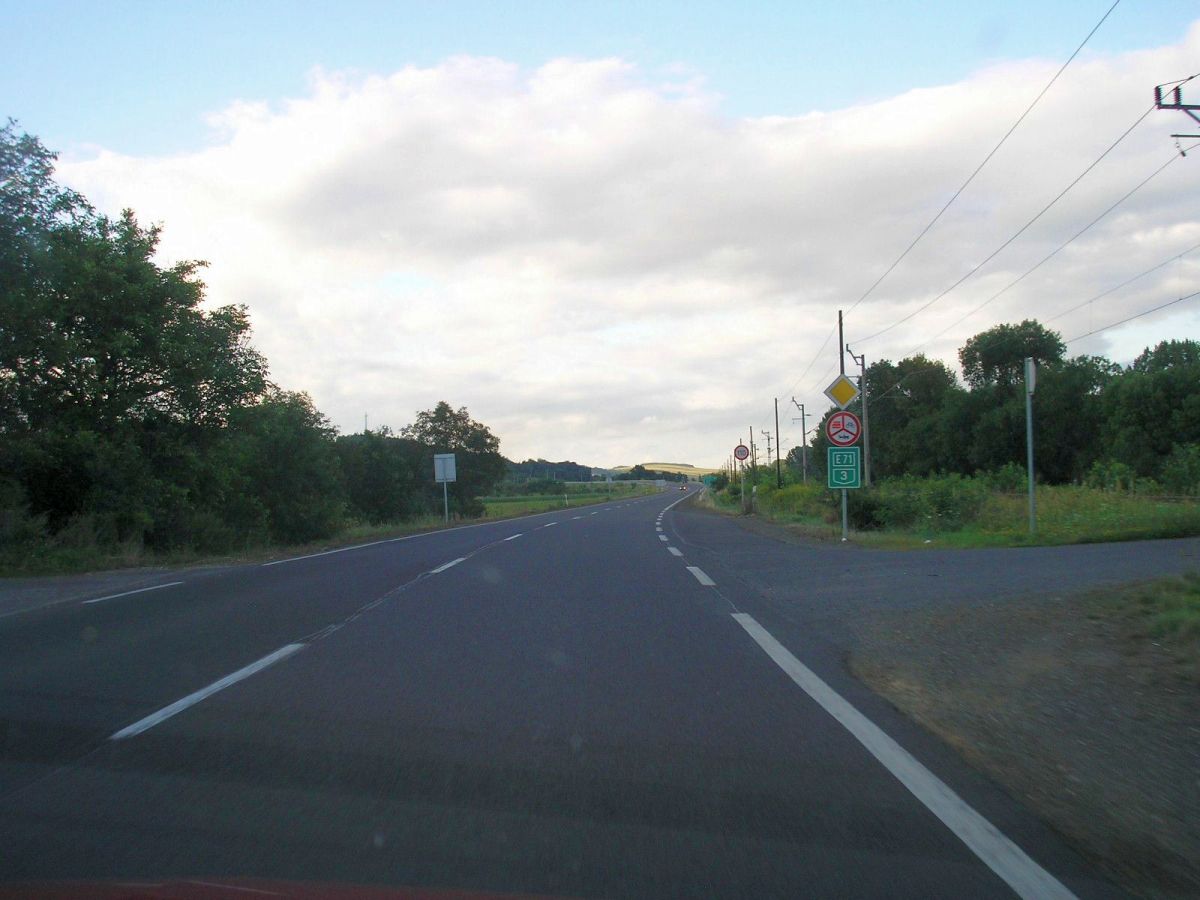 Cesta č. 1 smerom k pôvodnej ceste č. 131 — žltý kamión už prešiel popod nadjazd.