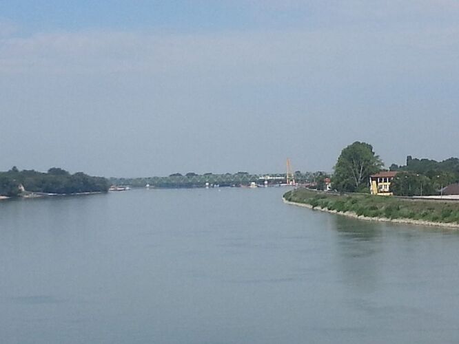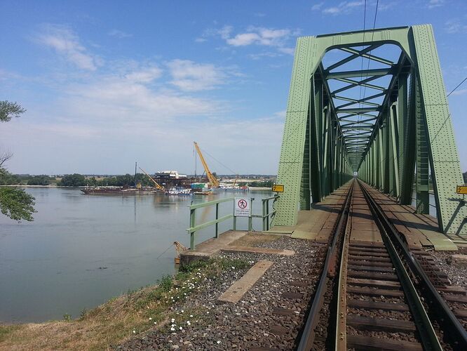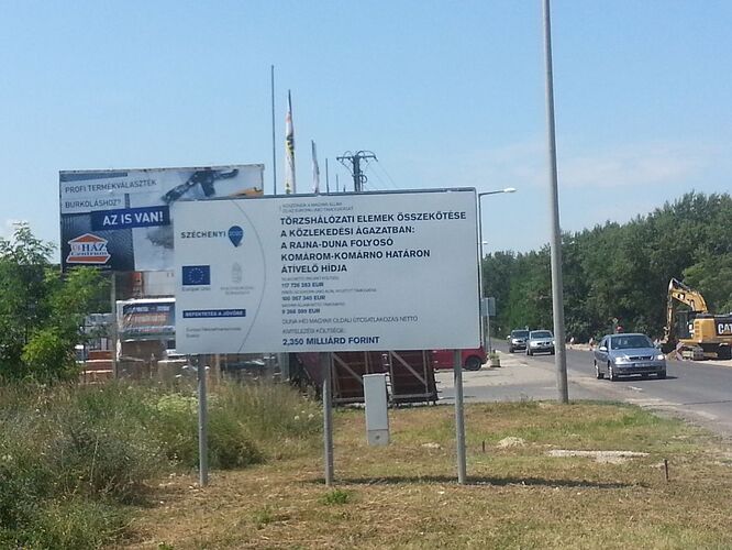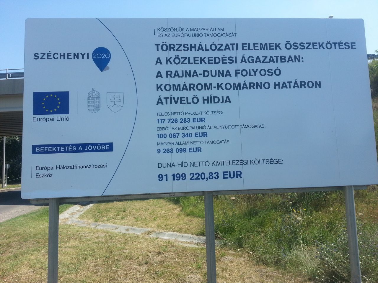 Tabuľa .. koridor Rýn-Dunaj… / čistá cena napojenia k mostu na maďarskej strane 2,350 mld. Ft.