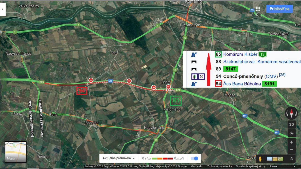[Uzavretá M1 medzi uzlom Bana a uzlom Komárom - smer BP]