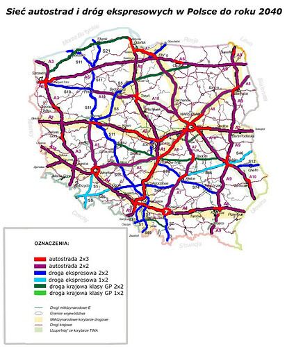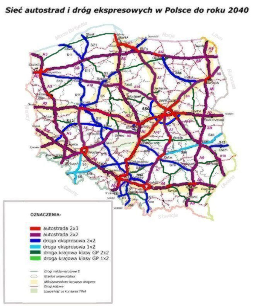 [Poľsko - návrh ďalšieho trasovania diaľníc a RC II.]