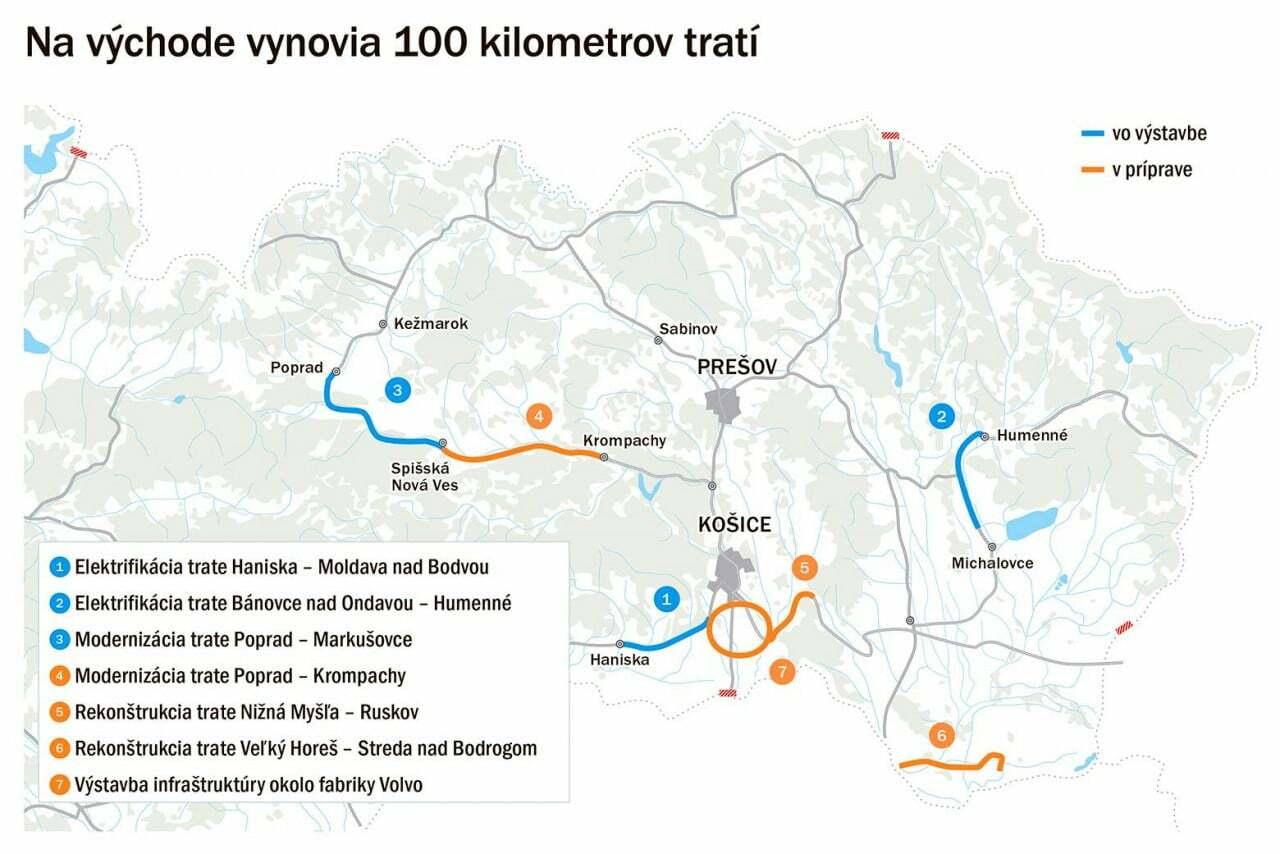 Vlaky si tu od 90. rokov skrátili cestu o desiatky minút a teraz sa pozornosť presúva na východnú časť hlavnej osi. Štát momentálne realizuje dva megaprojekty – dokončuje železničný uzol v Žiline a začal modernizáciu trate pri Poprade. Hodnota oboch stavieb presahuje 300 miliónov eur.