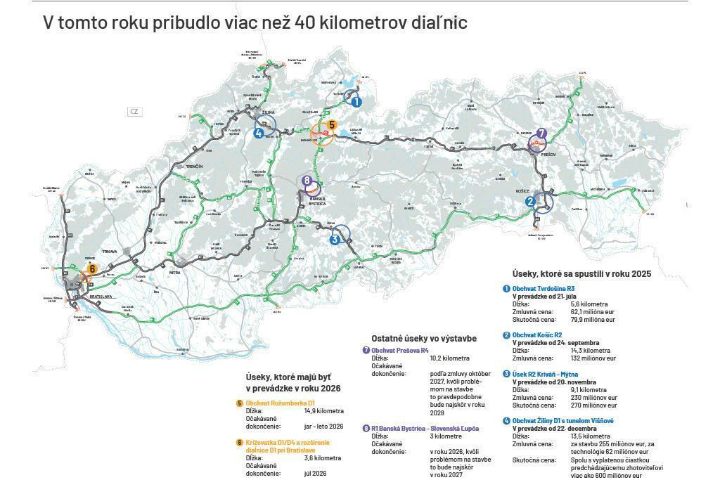 V roku 2026 teda spustí štát vrátane rozšírenia diaľnice a dokončenia diaľničnej križovatky zhruba 18,5 kilometra autostrád. Úplne nových kilometrov bude zhruba 15.