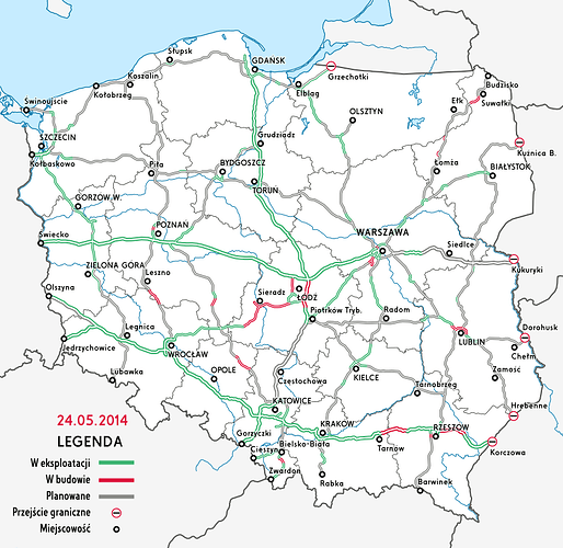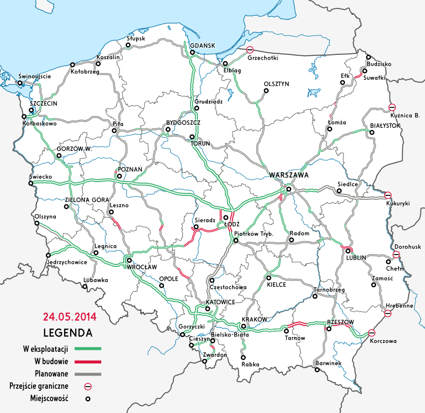 [Sieť diaľníc a rýchlociest v Poľsku 05/2014]