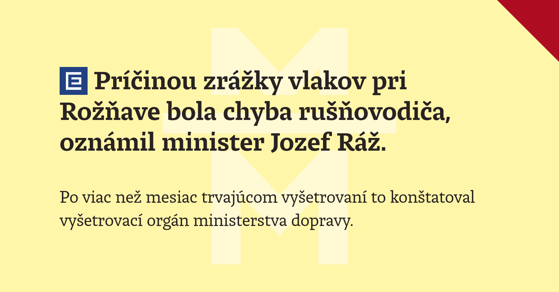 Príčinou zrážky vlakov pri Rožňave bola chyba rušňovodiča, oznámil minister Jozef Ráž. Po viac než mesiac trvajúcom vyšetrovaní to konštatoval vyšetrovací orgán ministerstva dopravy.