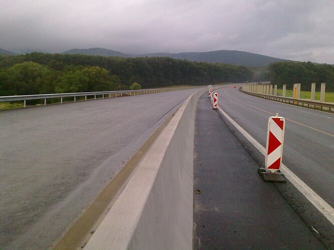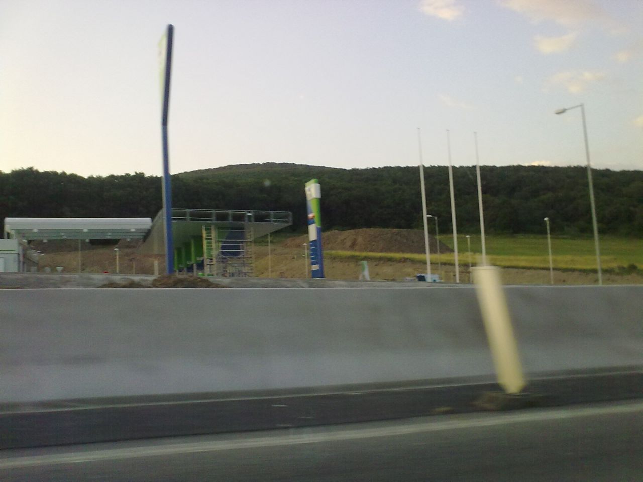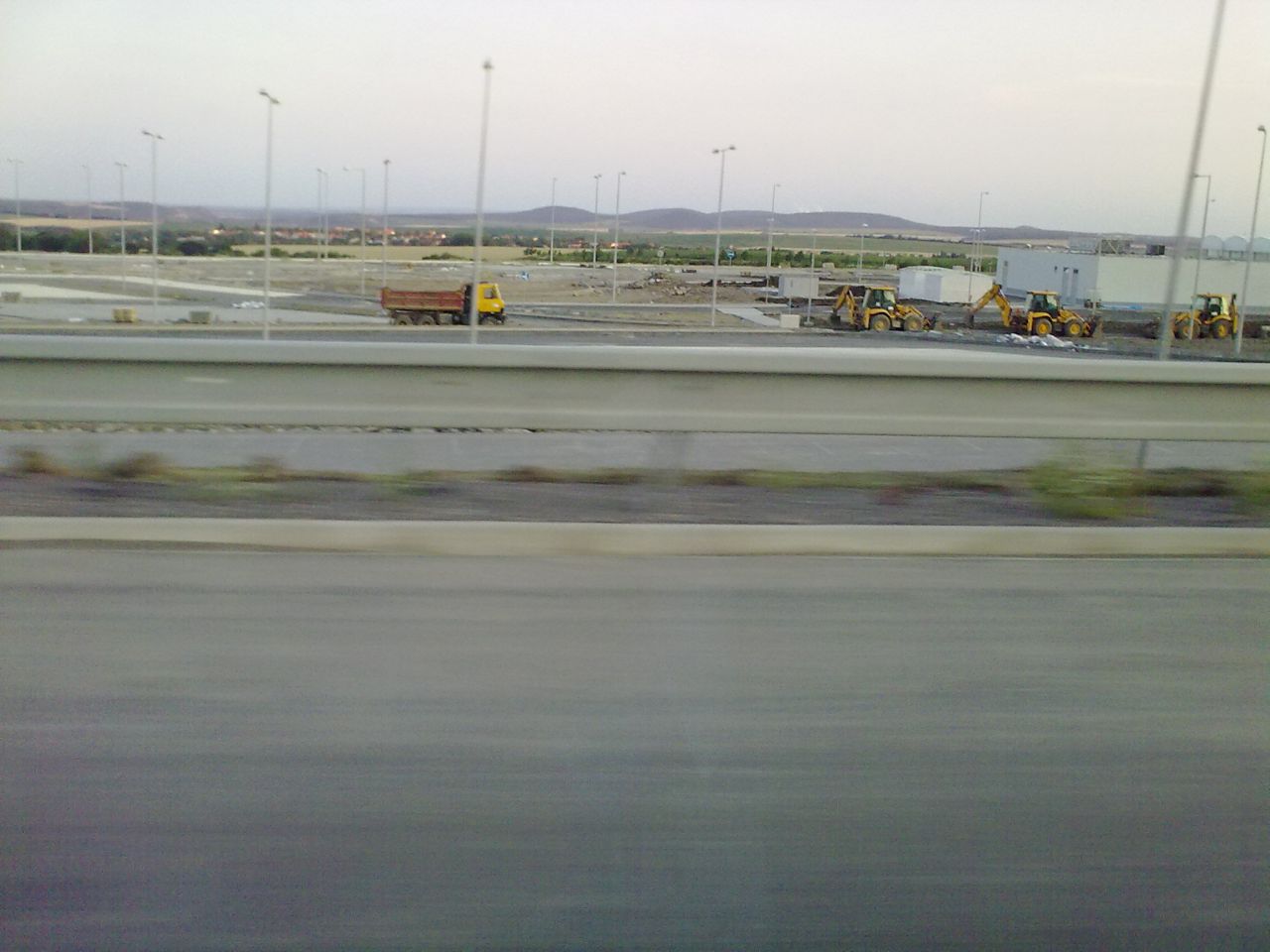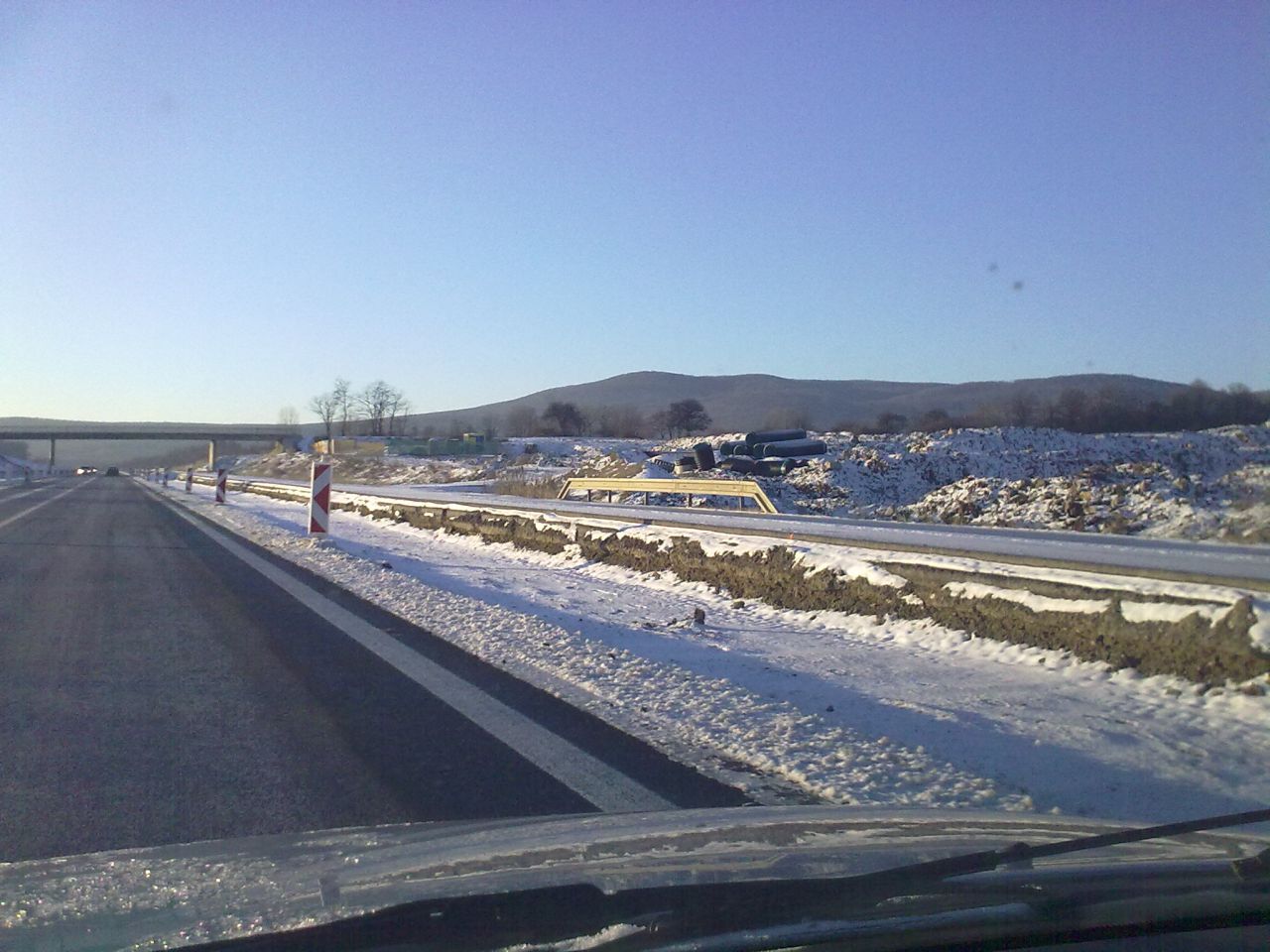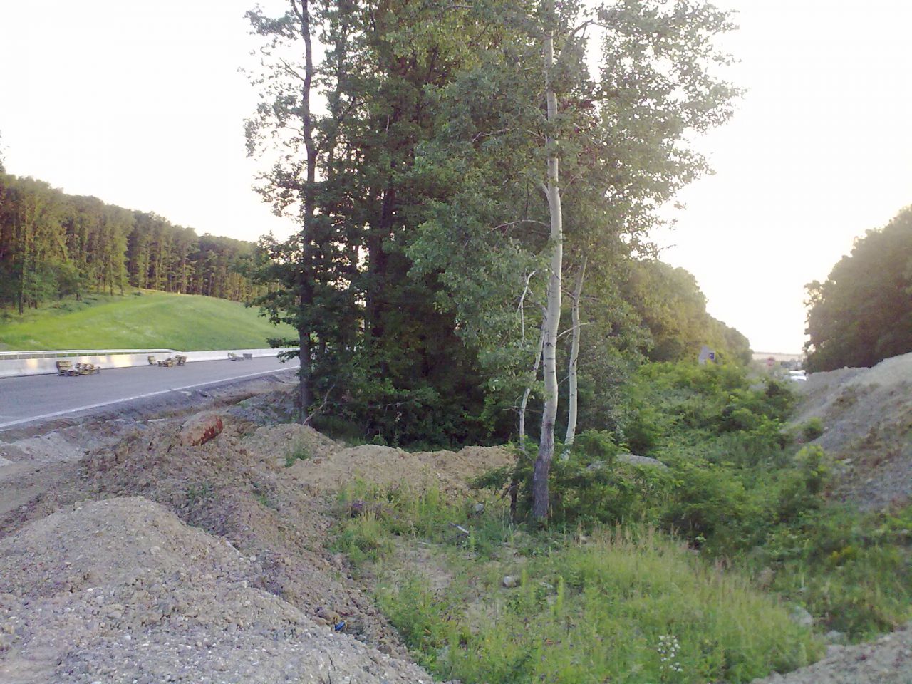 Večerné foto úseku medzi MÚK Čaradice a odpočívadlom Tekovské Nemce. Betónové zvodidlá sú už vybudované, AB kryt položený aj polprofile ZV-NR